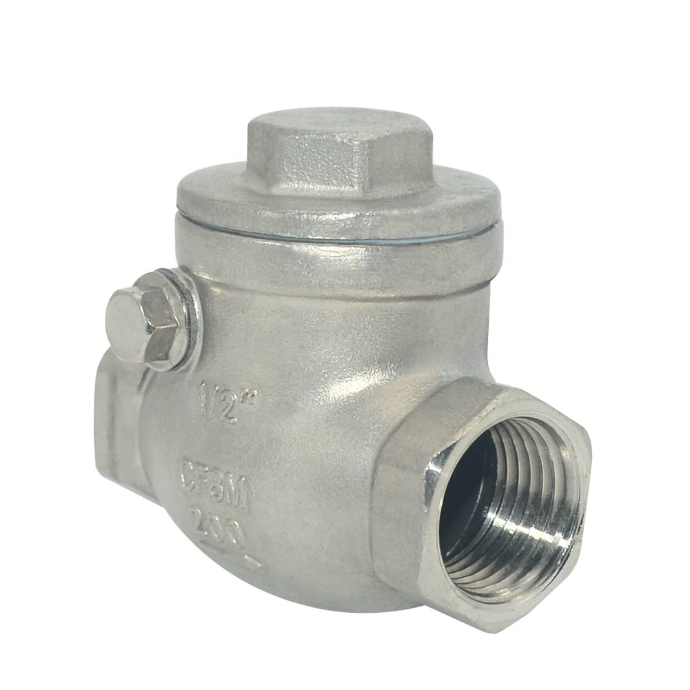 eBay Product Listing Welcome to Your Favorite My Store Your satisfaction is our top priority – Shop confidently Stainless Steel SS316 Swing Check Valve,NPT Female x Female Thread,WOG 200 PSI PN16 CF8M (1/2") Item Gallery Item Description Valve body material: stainless steel 316200PSI/PN16, ANSI B1.20.1, including stainless steel 316 valve disc and nut. Temperature range: -60 to 450 degrees Fahrenheit, suitable for a variety of liquids and gases (water, oil, air, gas, light acids/alkalis). Working pressure: 200 WOG, port type: female x female, used to connect external threaded pipes. Notes on use: Swing check valves are for horizontal use only. When fluid pushes the plug in the correct direction, it will "swing" open to allow flow. If the flow is in the opposite direction, it will swing and close. Check valves cannot be used in vertical applications as gravity may affect the swing function. Widely Applications:Check valves are used to assist one-way flow. The stainless steel body and PTFE seals provide high corrosion resistance, allowing these check valves to be used with a variety of fluids, including but not limited to water, oil, natural gas, air, light alkalis, acids, biodiesel, fuels and alcohols. Special Features Package: 1 Pc x Check Valve For use with biodiesel, this check valve will require changing of the NBR seals to a more resistant seal Note: Check valves do not create a 100% seal against backflow like a ball valve would. If prevention of backflow is desired, two check valves should be used in series with each other. Any fluid which finds its way past the first check valve is unlikely to have enough pressure to pass through the 2nd. It has a stainless steel 316 disc, screwed cap, and female National Pipe Taper (NPT) connections on both ends. Female NPT threads connect to male threaded pipes, creating a tighter seal than straight threads. Our Guarantee To You We offer fast shipping, free delivery, and 100% customer satisfaction guarantee. Not satisfied? Return your item for free within 30 days. 30-Day Free Returns Shipping Details Items will be sent to your eBay address. Please verify before purchasing. Typical delivery within 3-7 business days. Professional shipping services used for all orders. We ship to the continental US (48 states only). Unable to deliver to Alaska, Hawaii, or territories. No APO/FPO or PO Box deliveries available. We use eco-friendly packaging Payment Options We accept these secure payment methods: All transactions securely processed through eBay's payment system. Simple Returns 30-Day Satisfaction Promise Contact us through eBay messages within 30 days of delivery. We'll provide return instructions and our address. Return the item in its original condition. We'll process your refund within 48 hours of receiving the item. Get In Touch Have questions about your order? Contact us through eBay messaging for prompt assistance. We typically respond within 24 hours.