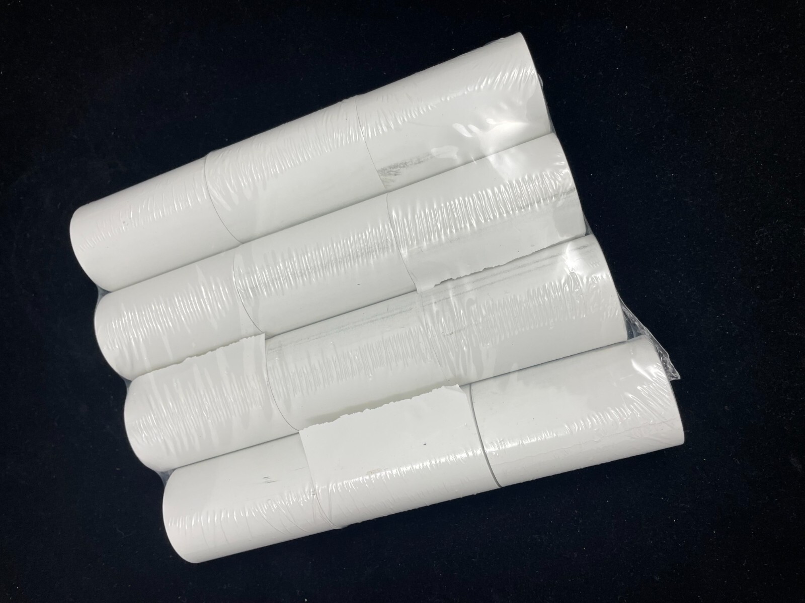 NEW / Sealed 2 1/4" x 50' Thermal Paper Rolls (12 Pack) for Cash Registers White bookcase for inventory.