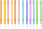 QUICK DRY AND NO BLEED: The Bible Safe Highlighters easily on thin any paper. Water-based ink, dry quickly. 12 COLORS: Cute highlighters that are perfect for color coding and to highlight favorite book passages or notes. PROTECTIVE COLOR FOR EYES:Non-neon, soft, mild and assorted colors. Easy on the eyes, not distracting. COMFORTABLE GRIP:Flat shape - comfortable and easy to hold without a sore hand & don't roll around while using. GREAT CHOICE:For journal, planner, work, study, note taking, annotating, in school, university, at home, in the office and even when traveling. Great for women families and friends. DUAL ENDED DESIGN- Pastel highlighters One end has a fine tip for writing, outlining and detailing; The other end has a wide tip for smudging, filling and coloring large areas. Provides you with more creative options and flexibility. HIGH QUALITY - Made of high quality materials to ensure a smooth and precise fluorescent experience with no penetration or feathering. Perfect for adding a soft and natural touch of color to your notes and documents that won't fade easily. ENHANCE EFFICIENCY - Significantly enhance your study or work efficiency and reduce your visual fatigue from reading with different colored markers, this is a must-have tool for students, professionals and examiners. EXQUISITE PACKAGING - The stylish and premium packaging makes it a great choice for teachers, classmates, best friends, coworkers and stationery lovers. PRACTICAL DESK DECOR - Enhance your desk aesthetic with these assorted pastel highlighters that bring a pop of color to your workspace.