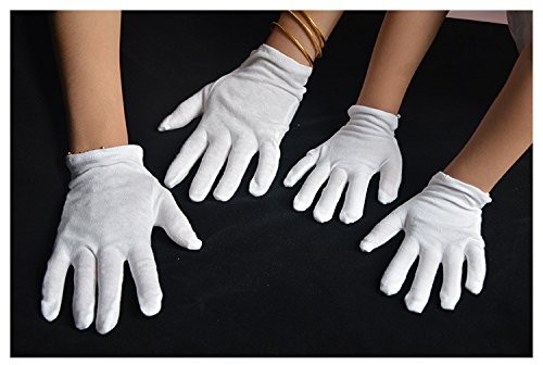 Gloves ♣ Gloves come in bulk pack of 12 pairs (24 pcs) ♣ Size S fit most 8-14 years old teens, Size M fit for most women, Size Large and extra large for most men. ♣ Made of cotton ♣ Three seams on the front of gloves for a more fashionable and elegant look. ♣ Perfect for Parade, Catering, Marching band, Santa Costume, Inspection, Magician, Tuxedo Formals, Costume, Military, Doorman, Fire or Police uniforms. ♣ Package includes 12 pairs of white gloves Gloves come in bulk pack of 12 pairs(24 pcs) Size S fit most 8-14 years teens, size M fit for women, size Large and extra large for men. Made of cotton fabric, these gloves are hand/machine washable and re-usable, lightweight and comfortable to wear The white cloth gloves are soft and convenient to take on/off. Good stretchy make you work with flexibility Safe and Convenient to Use: They will dry the sweat in your hands and the oil while working, Thicker fabric works great to keep your hands clean and protect your hands from possible injury Great for Stage performance, academy, school, band, parade, butler, inspection, church, funeral, maid of honor, masquerade etc