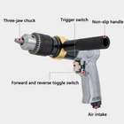 Description: 1. Robust, light weight die-cast aluminum body, press switch easy to start, easy one-hand operation. Suitable for drilling, honing, and hole saws. 2. Product application range, used in automotive, electrical appliances, energy, aviation and shipbuilding and other high-end technology industrial fields. Specifications: 1. Clamp head: 1 / 2" 2. No-load rotation speed: 700 RPM 3. Working air pressure: 90 psi 4. Avera ge gas consumption: 7cfm 5. Weight: 1.4kg Package Included: 1 set The pneumatic drill