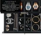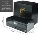 Please Note: Most orders are handled within 2-3 business days. Our stated 5 business days handling time applies only in rare circumstances. Our stated free shipping cost for large/bulky items (large furniture, appliances, electronics, etc.) is only applicable for orders with shipping addresses within mainland USA (Upper 48 States). Customers located outside of the mainland USA region (Guam, Hawaii, US Virgin Island, Alaska, Puerto Rico, etc.) must contact us to make shipping arrangement before submitting an order for any such large bulky items. Failure to adhere to the above requirement for large/bulky items, may result in automatic order cancellation. This sturdy storage case is made from a robust fibreboard, metal hinges, no magnets, a high clearance glass display top, plush velvet lining, an anti-rust and durable lock, and a strong protective casing. This high-end portable watch box will last you throughout the years and keep your adored possessions safe. Features: ORGANIZE YOUR WATCHES: Designed to fit small or large watches, you'll love our Specter Valet watch storage case. With 12 deep wide slots and a compartmentalized lower drawer, this jewelry box organizer is built to store, protect, and display even the bulkiest of watches. It can hold your luxury watches as well as bracelets, chains, necklaces, tie clips, cufflinks, ties and other accessories making it the perfect watch holder and jewelry box for men and women. TIMELESS ELEGANCE: Adding to our sophisticated approach, this lockable watch box features a sleek carbon fibre finish with gold metal accents. Thoughtfully lined and cushioned with soft black velvet that helps absorb glare, your watches will be protected and preserved. Capable of matching any decorum, these watch cases add opulence to any vanity, bathroom, or bedroom. PREMIUM WORKMANSHIP: We wanted to craft a watch case that was as high quality as the watches you put in it. This sturdy storage case is made from a robust fibreboard, metal hinges, no magnets, a high clearance glass display top, plush velvet lining, an anti-rust and durable lock, and a strong protective casing. This high-end portable watch box will last you throughout the years and keep your adored possessions safe. EXCELLENT CUSTOMER SERVICE: When you buy a Hawk & Gable watch box you can feel confident knowing that we offer a 100% satisfaction money-back guarantee! Your happiness is our priority. You can also rest assured knowing that our watch cases DO NOT contain any magnets and our oversized compartments/slots DO fit most large watches like G-shock, Invictus, Rolex, Hublot, Diesel and alike. A BEAUTIFUL GIFT SET: The perfect gift for any occasion that you can truly be proud of! Gifts for husband anniversary, men’s birthday, Christmas, or graduation. This luxurious watch display is beautifully gift boxed for instant presentation. Package Includes: 1 x Jewelry Organizer Listing and template services provided by inkFrog Please Note: Most orders are handled within 2-3 business days. Our stated 5 business days handling time applies only in rare circumstances. Our stated free shipping cost for large/bulky items (large furniture, appliances, electronics, etc.) is only applicable for orders with shipping addresses within mainland USA (Upper 48 States). Customers located outside of the mainland USA region (Guam, Hawaii, US Virgin Island, Alaska, Puerto Rico, etc.) must contact us to make shipping arrangement before submitting an order for any such large bulky items. Failure to adhere to the above requirement for large/bulky items, may result in automatic order cancellation.