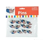 12 ~ United States Flag Print Pins Shaped like the states and decked out in red, white and blue, these lapel pins are great for Independence Day, Veteran's Day, Memorial Day or any other time of year when you want to sport a little of your American pride! They're great office giveaways and handouts at political events and fundraisers. Metal. 7/8"
