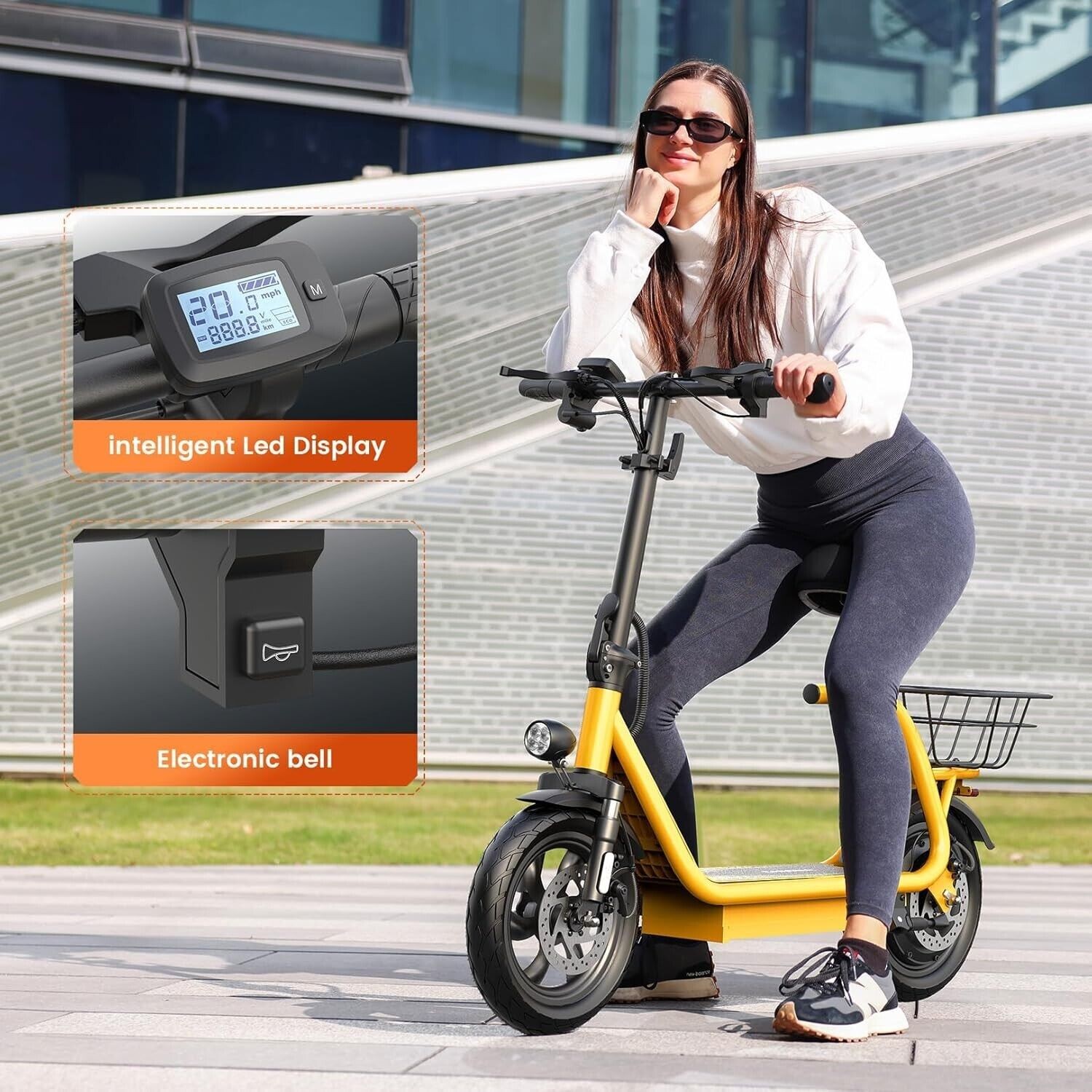 $ 252.91850W Electric Scooter with Seat Basket for Adults and Pets 25 Mile Range 22MPH Speed