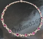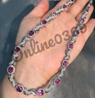 12.2ct Oval Pink Cubic Zirconia mens Tennis Link Necklace Silver Free Stud