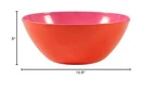 ’s 2-tone large bowl is perfect for soup or salad. It’s dishwasher safe, and heat resistant. It’s made out of scratch and shatter resistant high-grade BPA-free melamine. Great for indoor or outdoor use, and coordinates with other products. High-grade, glazed melamine plate is scratch and shatter resistant, non-absorbent, and BPA-free. Ideal size for serving large salads, stews, and pasta. Easily serves 6 to 8. Coordinates with our salad servers. Use for indoor and outdoor entertaining. Dishwasher safe, hand wash recommended. Do not use in the microwave. Measurements: 12.5"D x 5"H; 6.3 QT