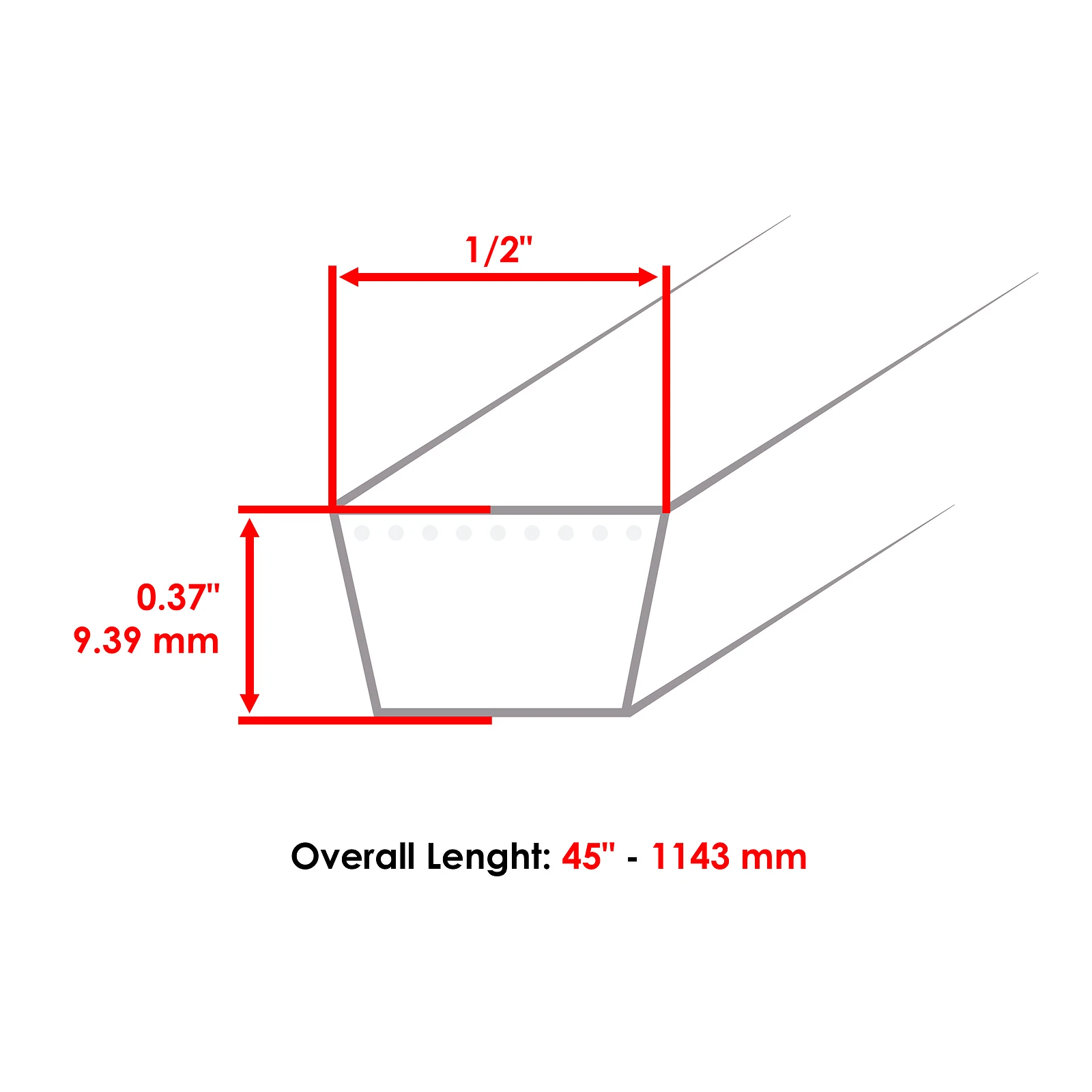 eBay Item 276741710354 Premium Quality Replacement PartDriveBelt Compatible with Cub Cadet Models : 85 86 - 32" (1975 & After) 1028 - 28" (1989-1992) 805 - 26" (1984-1986) 865 - 26" (1982-1984) Compatible with John Deere Models: 317 9960 9965 9970 ( - 026000) Compatible with MTD Models: 01918 (310-840-118) - (1990) 045-1708 (310-850-054) - (1987-1990) 0573909 - (1988) 06-328447 - (1989) 149-852-023 - (1989) 2824-985 - (1988-1990) 2824-993 - (1988) 2833-762 - (1990) 310-840-000 - (1990) 310-840-050 - (1990) 310-960-000 - (1990) 310-840-352 - (1990) 310-850-000 - (1990) 310-850-327 - (1990) 310-960-050 - (1990) 310-960-327 - (1990) 310-960-352 - (1990) 310-965 311-965 - (1990) 311-840-000 - (1991) 311-840-118 - (1991) 311-850-000 - (1991) Compatible with White Outdoor Models: SB-1010 - (1989-1990) SB-810 - (1985-1987) Compatible with Troy Bilt Models: 34036 - 22" (SN: 340360200101 - 340360299999) 34037 - 22" (SN: 340370200101 - 340370299999) 34038 - 26" (SN: 340380200101 - 340380299999) 34039 - 26" (SN: 340390200101 - 340390299999) Compatible with Murray Models: 309000x31A - 30" (2003) 309000x8A - 30" (2003) 309000x8B - 30" (2004) 309000x8C - 30" (2005) 309000x8NA - 30" (2003) 309001x08A - 30" (2009) 309001x18A - 30" (2003) 309001x48A - 30" (2003) 309002x24A - 30" (2004) 309002x24B - 30" (2005) 309002x24C - 30" (2005) 309003x99A - 30" (2003) 309003x99NA - 30" (2004) 309005x10A - 30" (2001) 309005x51A - 30" (2001) 309006x00A - 30" (2006) 309006x50A - 30" (2005) 309006x50B-SW - 30" (2006) 309006x50C - 30" (2007) 309006x78A - 30" (2006) 309006x78A-SW - 30" (2006-2007) 309007x151A - 30" (2009) 309007X151B - 30" (2009-10) 309007x51A - 30" (2008) 309008x99B - 30" (2005) Compatible with Simplicity Models: 1694432 1694477 - 48" 1695057 1695060 - 48" 2027 - 48" , 27hp KH 2027 - 48" , 27hp KAW 2027 - 48" , 27hp B&S Diesel 2690125 2690134 2690191 - 48" , 27hp KH 2690128 2690137 2690156 - 48" , 27hp KAW 2690182 2690188 2927 - 48" , 27hp KAW 2690131 2690140 2690185 - 48" , 27hp B&S Diesel Compatible with Toro Models: 56525 - 25" (SN: 002000001 - 002999999) (1972) 56575 - 25" , Electric (SN: 002000001 - 002999999) (1972) 56020 - 25" (SN: 003000001 - 003999999) (1973) 56022 - 25" (SN: 004000001 - 004999999) (1974-1975) 56025 - 25" (SN: 003000001 - 003999999) (1973) 56027 - 25" (SN: 004000001 - 004999999) (1974-1975) 56030 - 25" (SN: 003000001 - 003999999) (1973) 56033 - 25" (SN: 004000001 - 004999999) (1974-1975) Order Includes: 1x Drive Belt: Allis Chalmers: 108458, 2027121 Craftsman: 7335H, M426C, STD324450 Cub Cadet: 106990-C1, 754-3020, 954-3020 Dayco: L445 Dixon: 2469, 539124501 DR Power Equipment: 11443 Gates: 6845 Goodyear: 84450 Jacobsen: 390285 John Deere: LG48-450, M82720 MTD: 1651-31, 261-65-90, 262-65-90, 40207, 754-0111, 754-0194, 954-0111, 954-0189, 954-0194 Murray: 321206, 321206MA, 37X111, 37X111MA, 37X32 Ref No: A43 Simplicity: 108458, 108458SM, 1-2053SM, 2027121, 2027121SM, 2108458, 2108458SM Snapper: 1-0253, 1-0708, 1-2053 Steiner: 83A043, A43 Toro: 12-8260, 18-8890, 21-1810, 26-3050, 2-7139, 2-7197, 271-97, 33-2880, 3-5843, 38-0080, 691294, 73890, 7-3890, 7-3890C, A43 Troy-Bilt: 1108478, 1722993, 1724729, 1741334, 1747232, 1753032, 1756725, 1863848, GW-1724729, GW-1747232 Walker: 6232 White: 32-0044113 Yazoo: 1405, 205-045 Belt (INDUSTRY NUMBER): 4L450 Bolens: 110-8478, 172-2993, 174-7232, 186-3848 Gilson: 6185 Yardman: 1651-31, 261-65-90, 262-65-90 Length: 1143mm - 45 inWidth : 9.39mm - 0.37 inThickness : 12.7mm - 1/2 in