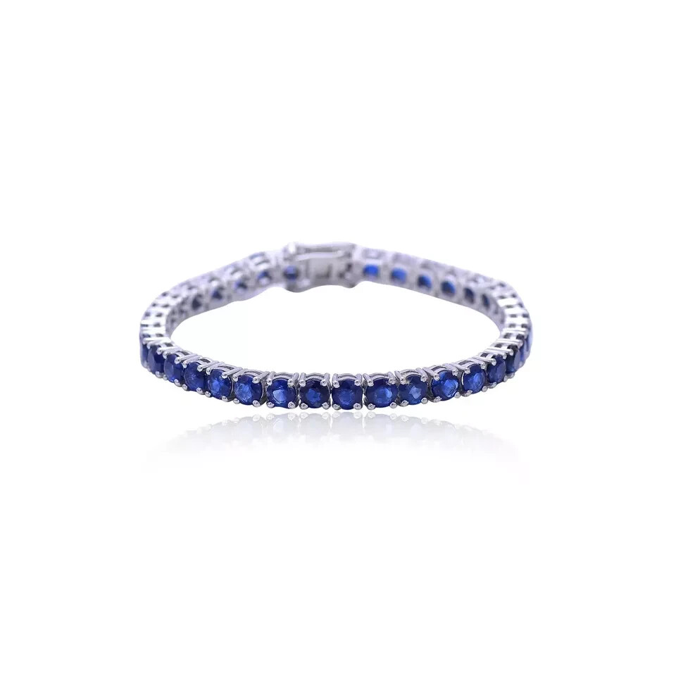 Bright-Jewels ! Buy With Confidence From A Trusted Seller ! We are here to help you ! Lab Created 12CT Round Sapphire Diamond Tennis Bracelet 14K White Gold Plated Metal - White Gold Plated Base Metal - Sterling Silver Stone Creation - Lab Created THANK YOU VISIT AGAIN.
