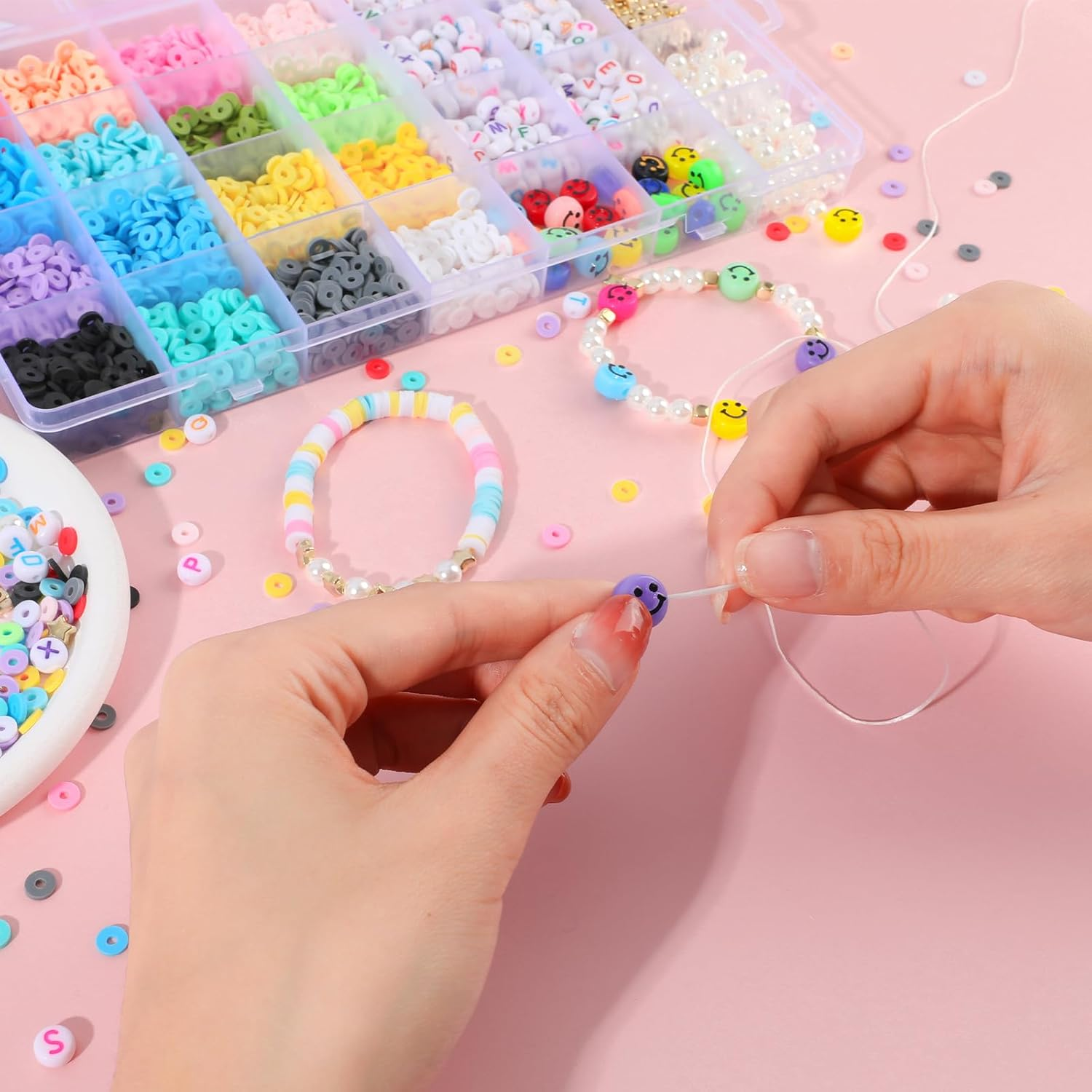 Diverse accessory elements: The jewelry making kit contains a variety of cute and vivid soft ceramic accessories, pearl, clay beads,smile face beads. Each element is unique and offers a wealth of choices for bracelet creation. Creative Craftsmanship: This bracelet making kit encourages creativity and craftsmanship. Consumers can freely combine and match the accessories according to their own preferences and creativity, designing a unique bracelet and showing their personality. 100% Customer Service: We always do our utmost to provide every customer with 100% satisfied products and customer service. We are quite sure that you will be super satisfied with our women's earrings. However, contact us for any concerns. Emotional Gift: The process of making a bracelet is an expression of emotion in itself. You can make a unique bracelet for a friend or family member to express your love, friendship or gratitude. As a gift, this bracelet making kit is unique. You can surprise and delight a craft enthusiast, friend, birthday or holiday celebrant with this kit. Product Description Diverse accessory elements The jewelry making kit contains a variety of cute and vivid soft ceramic accessories, pearl, clay beads,smile face beads. Each element is unique and offers a wealth of choices for bracelet creation. Creative Craftsmanship This bracelet making kit encourages creativity and craftsmanship. Consumers can freely combine and match the accessories according to their own preferences and creativity, designing a unique bracelet and showing their personality. Emotional Gift The process of making a bracelet is an expression of emotion in itself. You can make a unique bracelet for a friend or family member to express your love, friendship or gratitude. As a gift, this bracelet making kit is unique. You can surprise and delight a craft enthusiast, friend, birthday girl or holiday celebrant with this kit. Suitable for All Ages This bracelet making kit is suitable for families to participate together, both kids and adults can enjoy making this bracelet. Parents and children can make bracelets together to enhance their relationship and create wonderful memories. Making it a great opportunity for parent-child interaction.