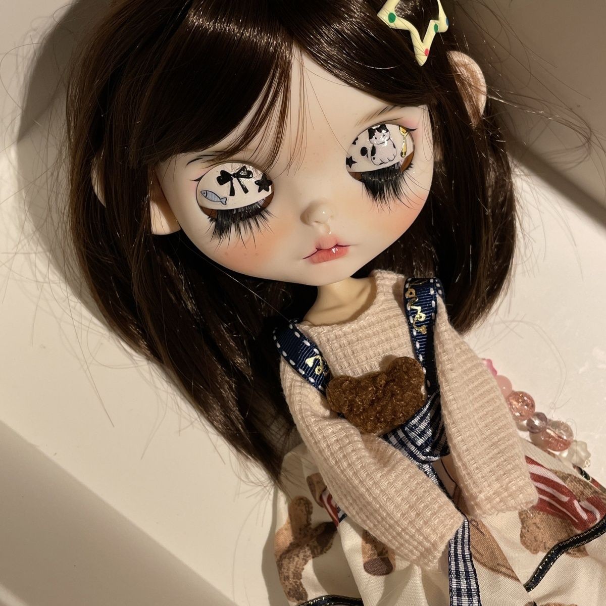 This 12-inch Blythe doll is absolutely stunning! The hand-sculpted face with realistic freckles and glass eye chips gives her so much personality. The 19-joint body allows for endless posing, and the included dress and wig make her ready to display right away. The attention to detail, from the painted features to the extra eye chips, makes her feel like a high-end collectible. Perfect for customization or just admiring—such a gorgeous doll!