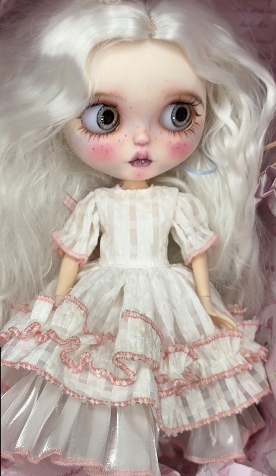 Details: This is a meticulously crafted Blythe doll with many unique features.This doll is based on a factory - version modification. If you need other versions, please contact me. Product Details: Item: Complete Blythe Doll Set Includes: Fully assembled Blythe doll × 1 Wig × 1 6 pairs of eye chips (Random) Hand-painted beaded pull cord × 1 set Elaborate outfit set × 1 Photography Method All the display pictures are taken with a raw camera without filters, ensuring that you can see the doll's most authentic appearance. After - sales Policy Since the doll is a handmade product, there may be some handmade marks, but these are not considered defects. Please consider carefully before purchasing. Once purchased, returns and exchanges are not accepted. Preferential Service If you purchase two or more items, please contact me, and you can enjoy free shipping. Other Services I also provide doll customization services and can replace joints or makeup for your dolls. If you need, please feel free to contact me.