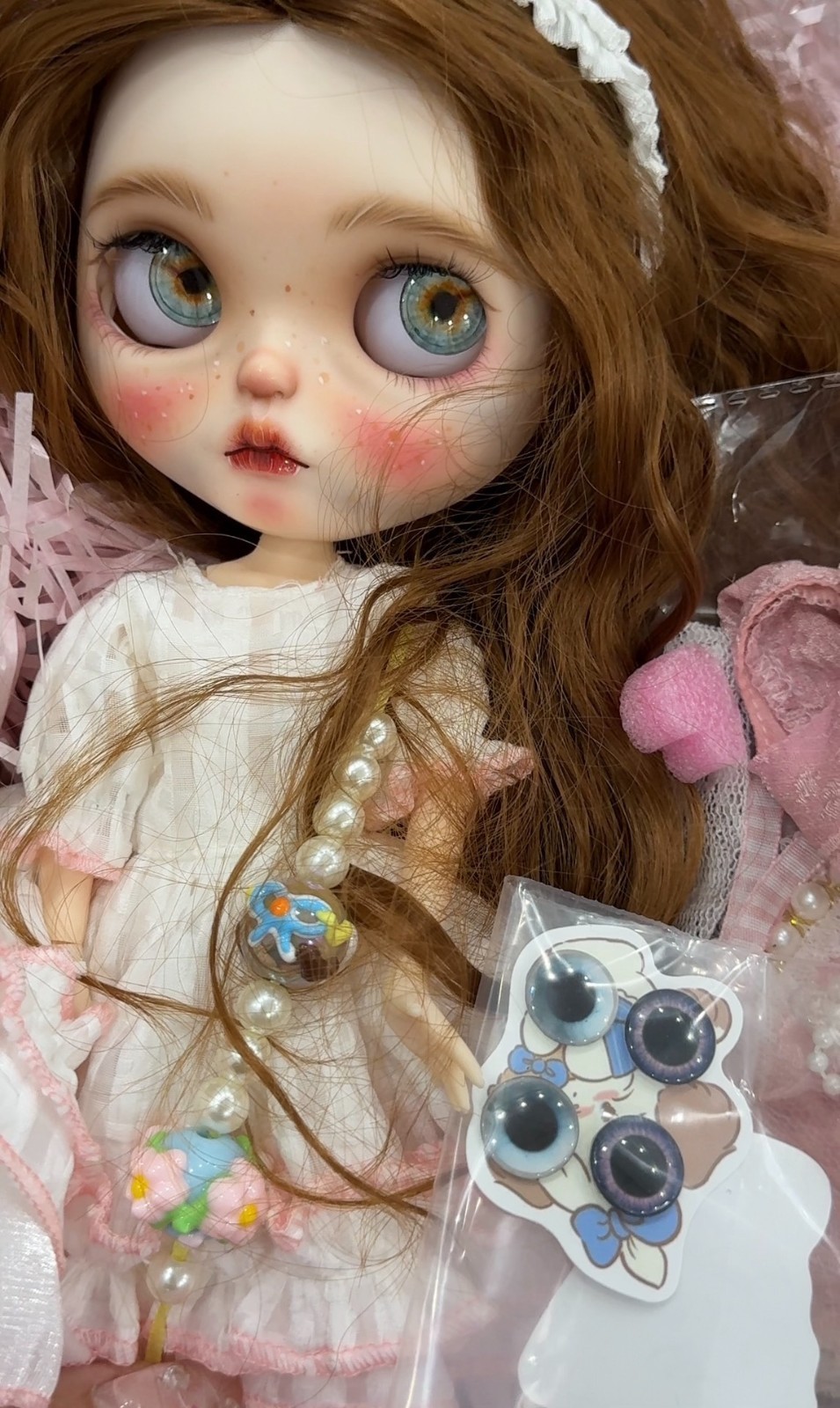 Details: This is a meticulously crafted Blythe doll with many unique features.This doll is based on a factory - version modification. If you need other versions, please contact me. Product Details: Item: Complete Blythe Doll Set Includes: Fully assembled Blythe doll × 1 Wig × 1 6 pairs of eye chips (Random) Hand-painted beaded pull cord × 1 set Elaborate outfit set × 1 Photography Method All the display pictures are taken with a raw camera without filters, ensuring that you can see the doll's most authentic appearance. After - sales Policy Since the doll is a handmade product, there may be some handmade marks, but these are not considered defects. Please consider carefully before purchasing. Once purchased, returns and exchanges are not accepted. Preferential Service If you purchase two or more items, please contact me, and you can enjoy free shipping. Other Services I also provide doll customization services and can replace joints or makeup for your dolls. If you need, please feel free to contact me.