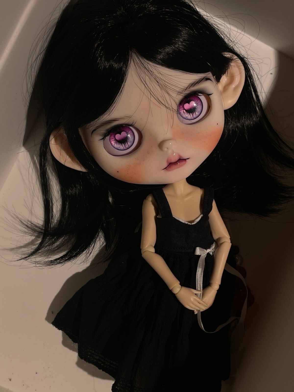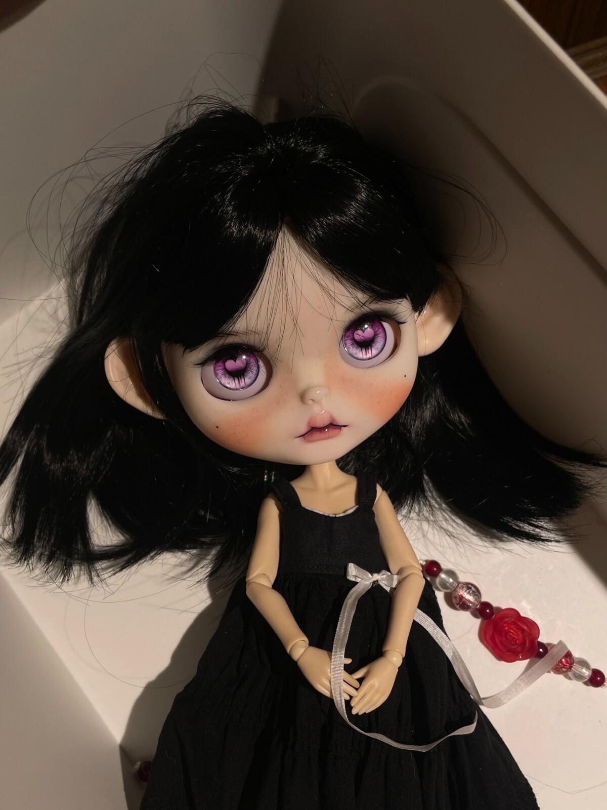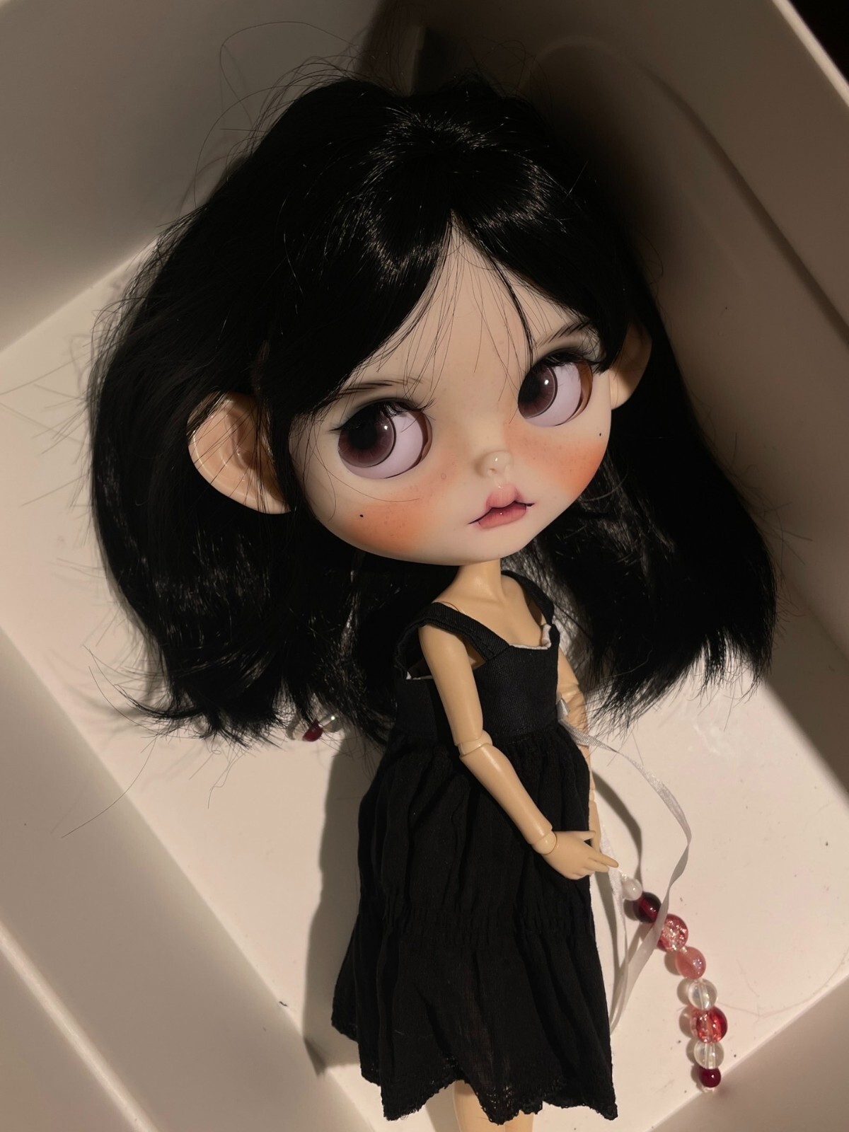 Product Details Size : 12 inches (approx. 30.5 cm) Skin Tone : White Body : 19-joint YMY22 base body, enabling dynamic posing. Free YMY24 replacement parts are included for personalized customization. Eye Features : Full and sleeping eye slots already opened. Comes with 4 pairs of glass eye chips and 1 pull-string eye set . Facial Craftsmanship : Entirely hand-sculpted, reshaped, and professionally painted with a realistic style, featuring hand-drawn freckles for added charm. Wig : The listed wig in the product images is included. It can be secured using eye putty or the complimentary silicone cap provided. Clothing : One random dress is included as a gift. Additional Information Style : This custom Blythe doll showcases a lifelike aesthetic, meticulously crafted by hand to capture intricate details. Handmade Nature : As a handcrafted item, minor imperfections such as subtle texture variations in painting or carving nuances are inevitable. These unique traits enhance its exclusivity and should not be considered defects. Return Policy : Due to the custom-made nature of this product, all sales are final. Please review the details carefully before placing an order.