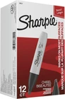 12PCS Sharpie Permanent Markers Chisel Tip Marker Poster Markers Wood Plastic Proudly permanent ink marks on paper, plastic, metal, and most other surfaces Intensely brilliant colors create eye-popping, vibrant impressions Remarkably resilient ink dries quickly and resists fading and water; AP certified Endlessly versatile chisel tip is perfect for countless uses in the classroom, office, home, and beyond Includes 12 black Sharpie permanent markers Sharpie 38201 Chisel Tip Permanent Markers; Proudly Permanent Ink Marks On Paper, Plastic, Metal, and Most Other Surfaces; Remarkably Resilient Ink Dries Quickly and Resists; Black The permanent marker that writes three ways, Sharpie Chisel Tip Permanent Markers have a versatile tip that makes broad, medium, and fine strokes - so you can express yourself any way you want. Key Features Proudly permanent ink marks on paper, plastic, metal, and most other surfaces Intensely brilliant colors create eye-popping, vibrant impressions Remarkably resilient ink dries quickly and resists both fading and water; AP certified Endlessly versatile chisel tip is perfect for countless uses in the classroom, office, home, and beyond 3.4 inches x 2.2 inches x 5.6 inches. Weight: 0.04 lb Ink Base Hybrid Number of Items 1 Pattern Markers Material Type Plastic Ink Color Black Theme Standard Number of Pieces 12 Pattern Name Markers Drill Point Chisel Additional Features Dries Quickly Point Type Chisel Hand Orientation Ambidextrous Body Shape Rectangular Water Resistance Level Not Water Resistant Item Weight 0.04 Pounds Marker Type Permanent Marker Surface Recommendation Paper Target Audience Kid, Youth, Adult Is Waterproof true Item Dimensions D x W x H 5.7"D x 3.3"W x 2.5"H Line Size 1 months Color BLACK Recommended Uses For Product Metal,Plastic Style Name 12-Count