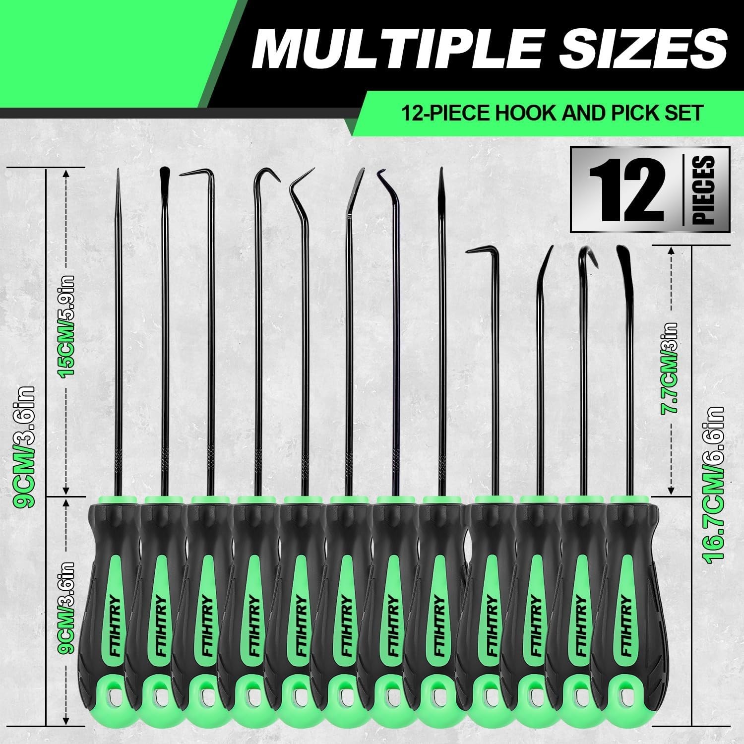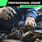 Premium Quality - Made of heat treated CR-V steel and chrome vanadium steel shafts, sturdy and sharp. Ergonomic Grip - Non-slip rubber handle assuring precision control, help with precise work like jewelry hand making. Multi-Use - Heavy Duty Hook Set has 6 shapes for pulling clips rings wires gaskets washers and other small parts and 4pcs o-ring pick set ,the rounded tips with blended edges come in handy for easy removal of seals and O-rings. Includes 12pcs - hook, 90-degree hook, 45-degree hook, double angle hook, complex hook, angle hook .4pcs o-ring pick set. Application-This pick and hook kit is used for ignition system, intake valve,seals, rifle bolt surface, fuel valve O-ring, hose end O-ring and more electronic