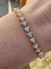 Blule Star_Manufacturer We Offer Customization Want to add a personal touch to this piece? Contact us and we will create one just for you. Customization We Offer : This 12ct Trillion Cut Simulated Diamond Women Tennis Bracelet features a round shape with a snap closure, crafted in Sterling Silver plated with 14k Yellow Gold. The bracelet showcases a 5mm white simulated diamond stone with excellent cut grade and eye-clean clarity. It is adjustable in length and can be personalized with engravings, making it a perfect gift for occasions like engagements, Mother's Day, weddings, anniversaries, birthdays, and more. Handmade with nickel-free materials, this tennis bracelet exudes beauty and artistry, ideal for adding a touch of elegance to any ensemble. Please send us a message on eBay for any customization requests and we will get back to you Payment We only accept payment via Payoneer, Please sent the payment to us within 8 days after the auction has ended, or you will have unpaid case auto open by eBay. Shipping We will ship all items within 5-7 business days of purchase during the work week (M-F) excluding holidays. If you order on Friday, your order will be shipped the following business day. Tracking will be provided when it becomes available. Domestic delivery may take up to 1 week. It all depends on the local office. Once the order leaves our location, we have no control over delivery times. We will only ship to a corresponding Govt Z.P.O.Dept Verified Address. Please make sure your address is current and correct. If the information does not match, your order may be cancelled. Buyers are responsible for all customs, duties and taxes for your respective countries. Delivery times for International Shipping will vary. California Buyers Pay 9.0% Tax on all orders case auto open by eBay. Terms of Sale Returns are accepted. Buyer must contact us within 30 days after the item is received. Item must be returned in unworn and resalable condition. We will only issue a refund for the purchase price, excluding any shipping fees. If we are at fault, we will provide a full refund. Buyer is responsible for all return shipping costs. Feedback Please do not leave a negative feedback as a way to communicate. Any rating given to a seller can neither be changed nor modified. So better communicate for faster resolution to any disputes. If you have any concerns regarding your purchase, please contact us via eBay Message, we assure you that a satisfactory resolution will be reached. Please help us maintain a 5 Star DSR rating in all 4 rating categories, if you feel otherwise, please let us know how we can score a perfect rating from you before you rate us. Thank you Visit Again