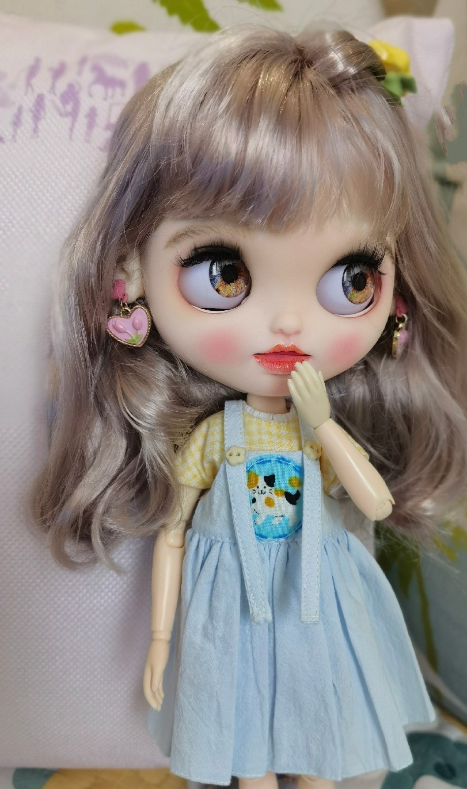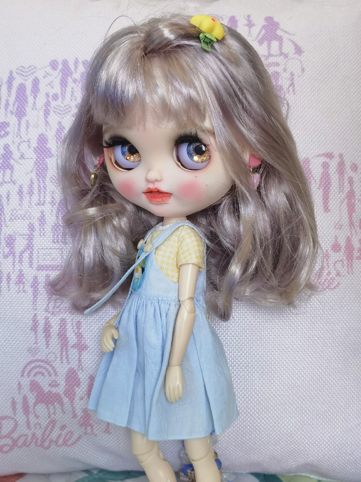 Product Details: You can choose between the brown scalp and the pale pink scalp in the picture. Please contact me to make a note. Size & Material: 12-inch (30.5 cm) collectible Blythe doll with factory-produced white skin and 19-joint articulated body for dynamic posing. Unique Craftsmanship: Hand-sculpted & modified face: Features professional grinding, reshaping, and hand-painted heart-shaped graffiti for a whimsical, one-of-a-kind (OOAK) aesthetic. Premium eye design: Includes 4 pairs of glass eye chips (random) for customizable, expressive gazes. Inclusions: High-quality synthetic wig (style as pictured , the sliver one). A random set of clothes will be sent. Important Notes: Artisan-made imperfections: This is a handcrafted custom piece , so minor irregularities (e.g., paint texture, sculpting nuances) are natural and add to its uniqueness. No returns/exchanges: Due to the bespoke nature of the product, all sales are final.