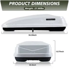 Type: Cargo Box gtin13: Does not apply Universal Fitment: Yes Manufacturer Warranty: 1 Year Item Height: 13.77 in Volume: 13 ft³ Item Width: 30.3 in Finish: Powder-Coated Items Included: Keys, Mounting Brackets, Roof Box UPC: Does not apply Item Weight: 27.83 lbs Placement on Vehicle: Roof Number in Pack: 1 Brand: VisRack Lockable: Yes Color: White Item Length: 56.29 in Features: Anti-theft Lock, Easy Installation, Easy Storage, Heavy Duty, Removable, Rust-Resistant, Waterproof, Water-Resistant, Both side opening, Tool free installation Suitable For: ATV, Car, Trailer, Van Maximum Weight Capacity: 130lbs, but 150lbs when Evenly Distributed Vintage Part: No Number of Locks: 2 Material: Plastic, Steel Attachment Type: Screw-On