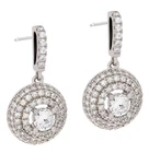 Total carat weight: 1.34 carats Metal: Silver, 925 stamped, nickel free, rhodium plated Stones: Cubic zirconia Both earrings have: (1) Round cut stones: 4mm, 0.25 total carats (6) Round cut stones: 1.5mm, 0.09 total carats (66) Round cut stones: 1mm, 0.33 total carats