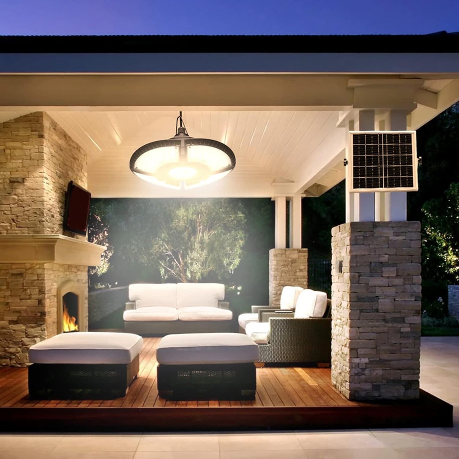 About this item Solar panel and lamp body of indoor solar lights for the house are designed separately, long cable with water-proof connector allow you to use it indoors and outdoors. It can be used indoors and outdoors such as shed, gazebo, balcony, garage, barn, home, garden, yard, patio, porch,chicken This solar gazebo light high-density ABS and IP65 waterproof materials, not easily worn by bad weather. Solar pendant light use 136 LEDs, brightness up to 1000LM when fully charged on fairly Specifications Solar panel: 6V/5W Lithium battery capacity: 3.7V2200mA PCS Operating 3.7V Working current: 1.2A Output power: 7W 1000lm 7.5m cable IP65 waterproof grade Charging time-: 8 hours Light 2H\4H\6H and time- (4 levels of dimming) About 10 hours, the lower the brightness, the longer the Remote control distance; The lamp head- right below 5-8 meters or so LED: SMD2835 0.2W- / 30 x 136 Pcs