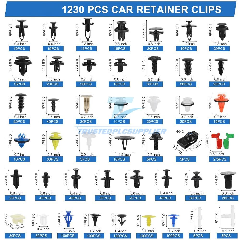 Product Description 1365pcs Car Retainer Clips Auto Panel Trim Fasteners Push Pin Rivet Bumper Kit About this item UNIVERSAL FIT KIT - 44 most popular sizes Car Clips Kit fit for car trim door panel, bumper, Fender, engine cover and splash shield retainers replacement for Ford, GM, Honda, Toyota, Chrysler and more. PREMIUM QUALITY - Push Pins Body Clips are made with high-quality nylon material, which is strong, robust and vibration resistant, would not break or crack easily. TOUGH FASTENER REMOVER - Tough Plastic and Metal material allow you to quickly and easily remove car door panel and upholstery clips without any damage. Easy access into confined areas SAVE TIME AND MONEY – No need to go to a auto parts store and look for different fasteners. We have them in box for what you need. You also can share with your families and friends. EASY TO CARRY--- JNLK Car Retainer Clips come with a storage box, Compact size, light weight, easy to carry and organize. Packing List: 1230PCS Car Retainer Clips 1PC Stainless steel fastener rivet clips removal tool 4PCS Car trim removal tools 120PCS Sponge-cushion 5PCS Longer plastic cable ties 5PCS Shorter plastic cable ties About Us Payment Shipping Returns Contact Us 1. Unless specified otherwise, all our products are IN STOCK and are shipped from USA Local warehouse - Not Overseas! 2. We provide a 30 day Satisfaction Guarantee or your money back (provided items are in the same new and resaleable condition.) 3. We have a PayPal Verified Business Account, please buy with Confidence! 4. Every item will be tesrted before send.We know our products well and if we don't have the answers we will do our best to find them for you! 5. Our friendly team look forward to serving you! Your satisfaction is our No.1 Priority We will do our best to satisfacy you. 1.Paypal, Credit Card, G Pay etc, many payment way is accepted. 2.Please be sure your shipping address is correct before make a payment. 1.We will ship out the item within 1-3 business days after comfirming the payment, appreciate your patience. 2.If the items are broken on the way(we will check the orders clearly before we sent them),please contact us in 3 days you received it. We will send you a new one or refund your payment. 1.We stand behind every buyer.Items can be returned for exchange or refund within 30 days. 2.Please contact us when you have any confusion of our item, we will solve the trouble for you as soon as possible. 1.This is professional Seller.We will reply your message within 24 hours. 2.Please contact us whenever you have any question about the item. We will deal with it as soon as possible. 3. If you are unhappy with the item or our service,please Contact Us before leave feedback,just give me a chance,thank you! About Us 1. Unless specified otherwise, all our products are IN STOCK and are shipped from USA Local warehouse - Not Overseas! 2. We provide a 30 day Satisfaction Guarantee or your money back (provided items are in the same new and resaleable condition.) 3. We have a PayPal Verified Business Account, please buy with Confidence! 4. Every item will be tesrted before send.We know our products well and if we don't have the answers we will do our best to find them for you! 5. Our friendly team look forward to serving you! Your satisfaction is our No.1 Priority We will do our best to satisfacy you. Payment 1.Paypal, Credit Card, G Pay etc, many payment way is accepted. 2.Please be sure your shipping address is correct before make a payment. Shipping 1.We will ship out the item within 1-3 business days after comfirming the payment, appreciate your patience. 2.If the items are broken on the way(we will check the orders clearly before we sent them),please contact us in 3 days you received it. We will send you a new one or refund your payment. Returns 1.We stand behind every buyer.Items can be returned for exchange or refund within 30 days. 2.Please contact us when you have any confusion of our item, we will solve the trouble for you as soon as possible. Contact Us 1.This is professional Seller.We will reply your message within 24 hours. 2.Please contact us whenever you have any question about the item. We will deal with it as soon as possible. 3. If you are unhappy with the item or our service,please Contact Us before leave feedback,just give me a chance,thank you! You may also like 12V Smart Car Battery Charger Automatic Lifepo4 Repair Maintainer Trickle 15.99 USD 17.89 USD Free shipping 11% off 650Pcs Car Retainer Auto Fasteners Push Trim Plastic Clips Pin Rivet Bumper Kit 11.69 USD Free shipping 3in1 52mm 2" Chrome Car Triple Gauge Set Kit Water Temp Oil Pressure Volt Meter 20.89 USD Free shipping 2 Roll x 2" 50FT Black Exhaust Wrap Header Manifold Fiberglass Heat Wrap Tape 20.69 USD 22.75 USD Free shipping 9% off Hitch Pin Lock with 2 Keys and Cover Truck Trailer Receiver Hitch 5/8" Locking 11.88 USD Free shipping Remote Battery Disconnect Switch 12V/24V 240A Kill Switch LED Voltmeter Display- 26.5 USD 27.89 USD Free shipping 5% off powered by
