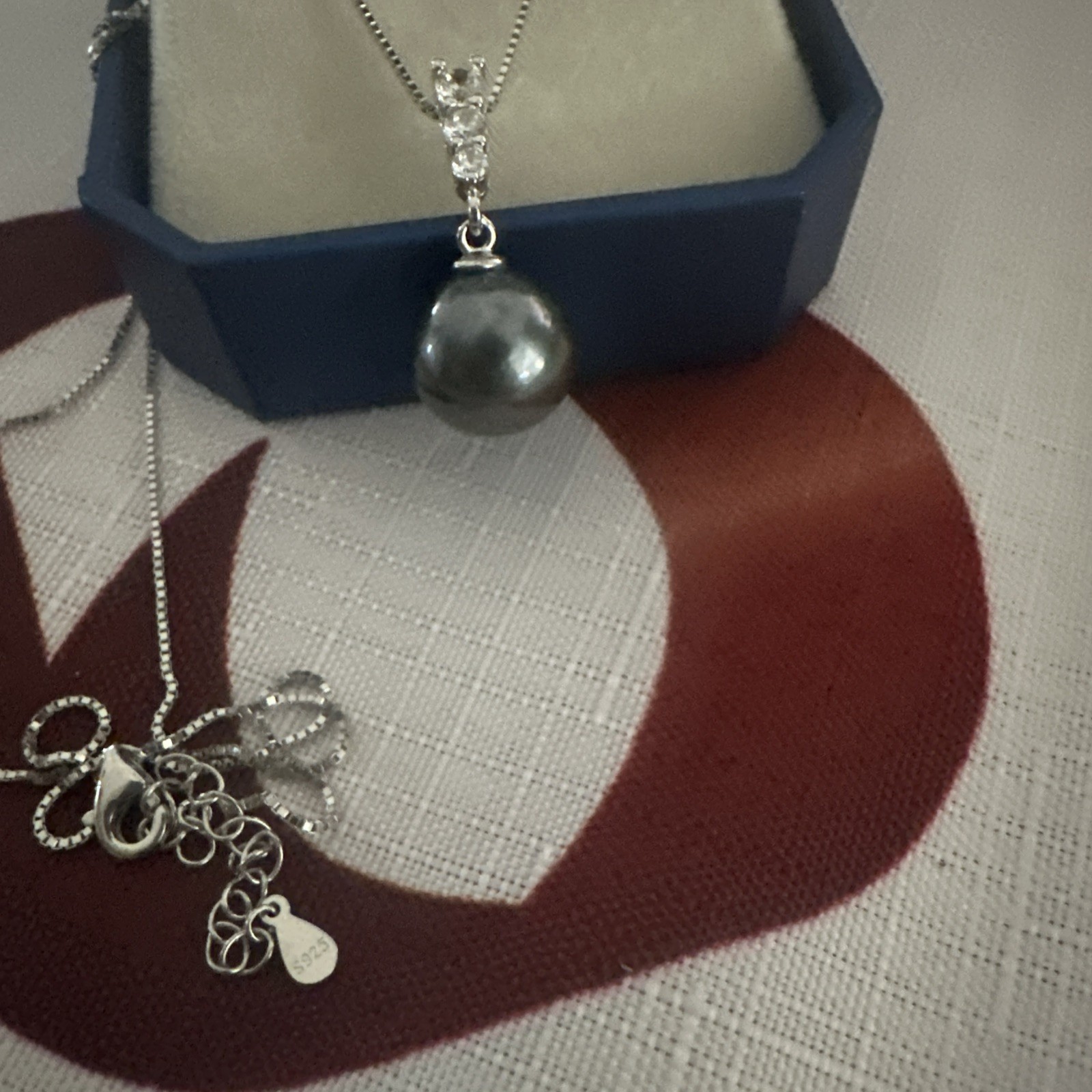 This 13mm Black Tahitian Pearl Necklace features a stunning round pendant adorned with three diamonds, all set in 925 sterling silver. The black Tahitian Pearl is the main focal point of the necklace, making it a perfect gift for occasions like Mother's Day, anniversaries, and birthdays. The natural beauty of the pearl combined with the elegance of the sterling silver and diamonds creates a sophisticated and timeless piece of jewelry. The necklace is 18 inches in length and comes with a cord chain for easy wear.