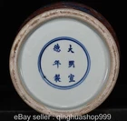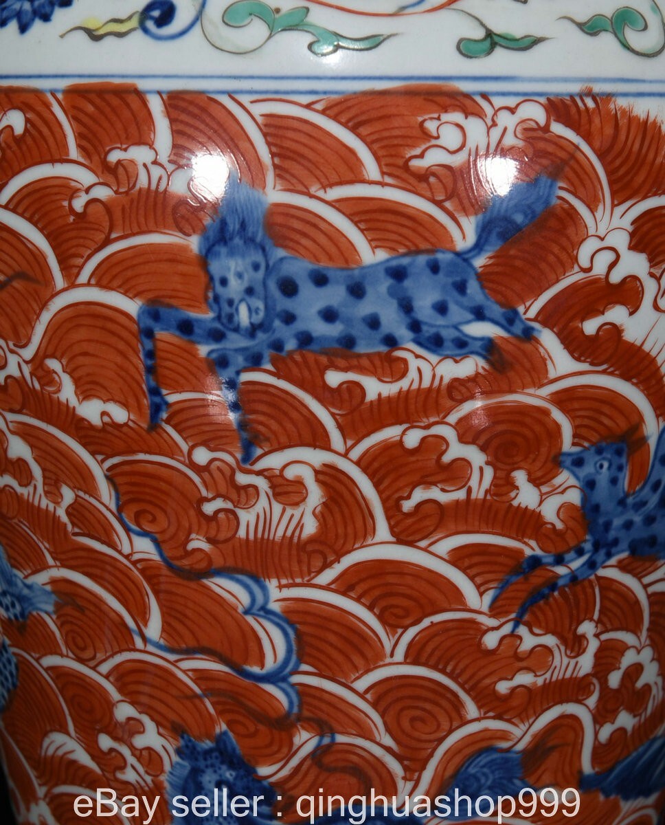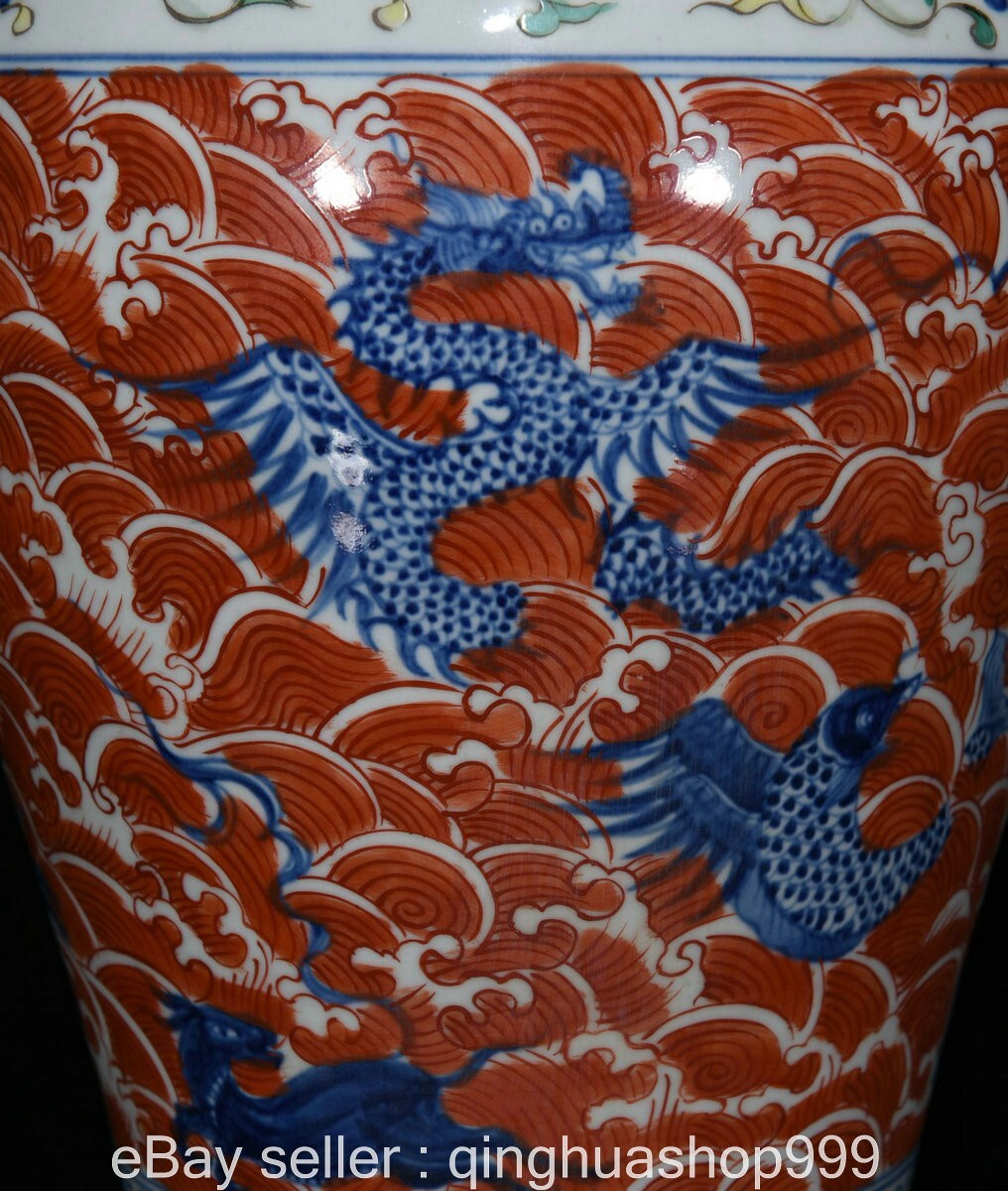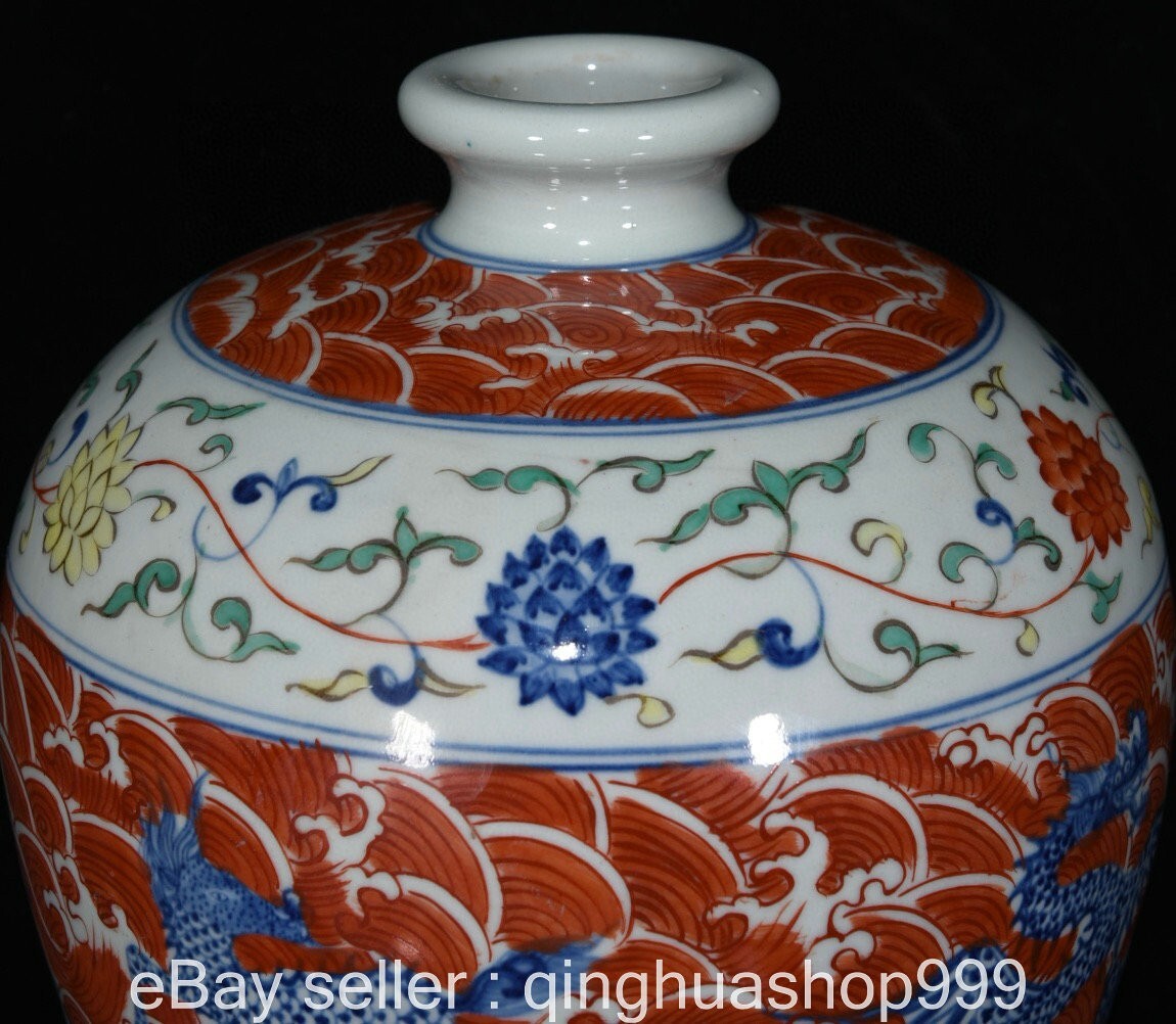 Here is an 14" Ming Xuande Marked Wucai Porcelain sea dragon beast pattern plum Bottle. As you can see the image, It is in good condition, and was created by skilled craftsmen in traditional style with fine handcrafts . This is a great piece of valuable collection, a valuable personal alter or a very good present. the handwork is very fine with incredible detailing. Don't miss out this chance to get it .Wish you good luck! Size: Height: 14 inch .Long: 9.2 inch . breadth: 9.2 inch Size: Height: 35 cm .Long: 23 cm . breadth:23 cm Weight: 4.0 KG----included the weight of packing materials Materials: Wucai Porcelain Condition: Good condition without broken or fixing Origin: China Payment EBay has updated its payment methods, and new management payment can be made through PayPal, apple pay, Google pay,credit card and other payment methods. Shipping We will ship your item within 1-2 day after the payment was cleared. Normally it expects 10 to 25 days to get to worldwide destinations. It needs 1-2 weeks to Japan, 2-4 weeks to Europe,Australia and USA . We ship worldwide . Feedback If you have any problem,please send me message first,we'll do our best to resolve the problem! Satisfied with our service,Please give me a 5 star positive feedback,then I will give you a 5 star feedback too If you are unhappy with the item or our service,please send me message before leave feedback,just give me a chance,thank you!