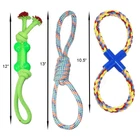 SUPER VALUE &GREAT FUN: Includes 14 Most Popular Dog Rope Toys for Small, Medium and Large Breeds. HIGH QUALITY: Made with Extra Thick Rope and Strengthened Joint Connections. Survive with Intense Plays. Weather Resistant. DENTAL CLEANING: Doggies Get Teeth Cleaning, Gums Massage and Stress Relief by Chewing these Ropes. Includes Interactive Rope Toys, Frisbee, tennies ball, rubber bone, Chew Bars and Puncture Resistant Balls. All Different Toys Bring Your Dogs Hours and Hours of Entertainment and Exercise. The items may vary due to recent upgrade. You may receive a set contain items of higher value than pictured. Not for aggressive chewers. Like every other toy, the cotton ropes are not indestructible. We recommend supervised play, and timely replacement of the broken ones.
