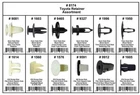 Package Includes: 146 Pieces Clips + 1 Plastic Box 10 Pcs of Clip # 9081 18 Pcs of Clip # 1614 12 Pcs of Clip # 1603 18 Pcs of Clip # 1560 10 Pcs of Clip # 9465 12 Pcs of Clip # 1576 10 Pcs of Clip # 9327 12 Pcs of Clip # 9591 18 Pcs of Clip # 1996 8 Pcs of Clip # 9912 8 Pcs of Clip # 1950 10Pcs of Clip # 1605 10 Pcs Door Trim Panel Retainer White Nylon Top Head Diameter: 13mm Middle Head Diameter: 15.5mm Bottom Head Diameter: 18mm Stem Length: 14mm Overall Length: 20.5mm Stem Diameter: 9.5mm For Isuzu Replace 8942264920 For Mazda Replace 9927-40-825 For Toyota Replace 67771-01010, 67771-12010 For A14269 18 Pcs Nylon Screw Grommet Natural Nylon #10 Screw Size Width: 13mm Length: 13mm Snaps Into 8.5mm x 8.5mm Hole For Toyota Replaces 90189-06010 For Honda Replaces 75521-611-0000 For Mazda Replaces 9991-00-601 For 96706-P0105 For A14274 12 Pcs Screw Type Retainer For GM Replace 20426301 For Mazda Replace 9926-50-625 For Toyota Replace 90467-06017 For Toyota Replace 90467-06017-20 For Toyota Replace 90467-06017-41 Material: Black Nylon Head Diameter: 15mm Stem Length: 12mm Fits Into 7mm Hole For A14260 18 Pcs Headlight And Grill Nut #10 Screw Size 12mm Wide, 12mm Long Fits into 8mm x 9mm Hole For Toyota Replace 90189-05013 For Mitsubishi Replace MS-480002 For A13932 10 Pcs Hood, Bumper, Fender Liner Retainer Condition: Brand New Black Nylon, Quality Guaranteed Head Diameter: 20mm (13/16") Stem Length: 8mm (5/16") Fits Hole Size: 7mm (9/32") Please Verify the Size before Purchase For Toyota Replaces 90467-07166 For A18888 12 Pcs #10 Screw Grommet Natural Nylon #10 Screw Size Head Diameter: 18 mm (23/32 inches) Stem Length: 17 mm (21/32 inches) Fits Into 8.5 mm Square Hole Replaces: 01281-00023 For Toyota Replaces 90189-06001 For Mitsubishi Replaces MB-098145 For Alfa / For Fiat / For Lancia Replaces 14203780 For A14275 10 Pcs Rear Bumper Cover Clip Push-Type Retainer Black Nylon Head Diameter 18mm (0.71 inch) Stem Length 28mm (1.10 inch) Fits into 9mm Hole (0.35 inch) Fits For Tercel 1988-On Fits For Camry 1988-On Fits For Celica 1996-On Fits For 4 Runner 2003-On Fits For Hi-lux 2003-On For Toyota Replaces 52161-16010 For Toyota Replaces 52161-02020 For A18873 12 Pcs Screw Grommet With Sealer #6 Screw Size Natural Nylon Head Diameter: 14mm Stem Length: 10mm Fits Into 7mm x 7mm Hole For Honda Replaces 90662-693-0030 For Honda Replaces 90662-693-003 For Toyota Replaces 9018-04066 For A14281 18 Pcs Trim Panel & Hood Seal Clip Black Nylon Head Diameter: 13mm Stem Length: 11mm Fits Into 5mm Hole For Toyota Replace 90467-08004 For Toyota Replace 90467-08011 For GM Replace 94842841, 94849113 Fits For Geo Prizm 1985-On Fits For Nova 1985-On For A18297 8 Pcs Front & Rear Wheel Fender Liner Screw Grommet Black Nylon #12 Screw Size Head Diameter: 16mm Stem Length: 19mm Fits Into 9mm x 9mm Hole For Toyota Replaces 90189-06028 For Tacoma, T100 & 4 Runner 1992-On For GM Replaces 94854203 For Chevrolet Nova & Prizm 1985-On For Pontiac Vibe 1985-On For A19194 8 Pcs Hood Insulation Retaining Clip Hood Pad Insulation, Package Tray Panel, Luggage Compartment Mat Black Nylon Head Diameter: 30mm Stem Length: 17mm Fits 7mm Hole Panel Thickness: 6mm Fits For MR2 1989-On, Fits For GM Nova 1985-On For Toyota Replaces 90467-09008 For A14738 10 Pcs Screw Grommet Black Nylon 1/4" (#14) or M6.3-1.81 Screw Size Head Diameter: 20mm Stem Length: 17mm Fits Into 8mm x 8mm Hole For Toyota Replaces 90189-06013 For Toyota Replaces 96706-W100 For A14267 eBay Cross Border Trade powered by ChannelEffect