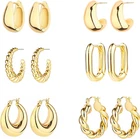 Product Description Gold Hoop Earrings for Women 14K Gold Chunky Hoop Earrings 1) Chunky Hoops with 14K Gold Plated, and Extra E-coating Color Protecting Skill, which make the colors Keep Longer. 2) Ideal Gift for family, gift for wife, christmas gift for women, mother, lover and friend. Gold Hoop Earrings set for women 1) These chunky hoops are hollow, Lightweight & Pretty. 2) They are comfortable to wear and won't bring any burden for your ears. You can wear them all day without issue and add to any outfit to instantly update. Great Earrings for Hypersensitive Ears 1) Non-allergenic materials 2) Genius design that doesn't require those pesky little earring backs! it's built into the earring so you don't lose them! Huggie hoop earrings Huggie earrings are so minimal and elegant, wearing them make you keep up with the fashion. Silver Twisted Hoops Twisted Hoops are popular and matched with daily wear. Easy to open and close: The clasp of Chunky silver hoops is very flexible and easy to open and close. Silver Chunky Hoops Finish: Chunky Hoops Earrings with Shiny Thick Rhodium Plating Colors. Material: Silver hoops are made of copper, Hypoallergenic, lead-free and nickel free. How to open huggies Perfect Jewelry Gift for Everyday Use and Any Occasion All occasion: Perfect size hoops for any occasion and outfit, these chunky hoop earrings are a great gift for her.