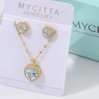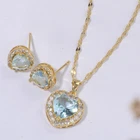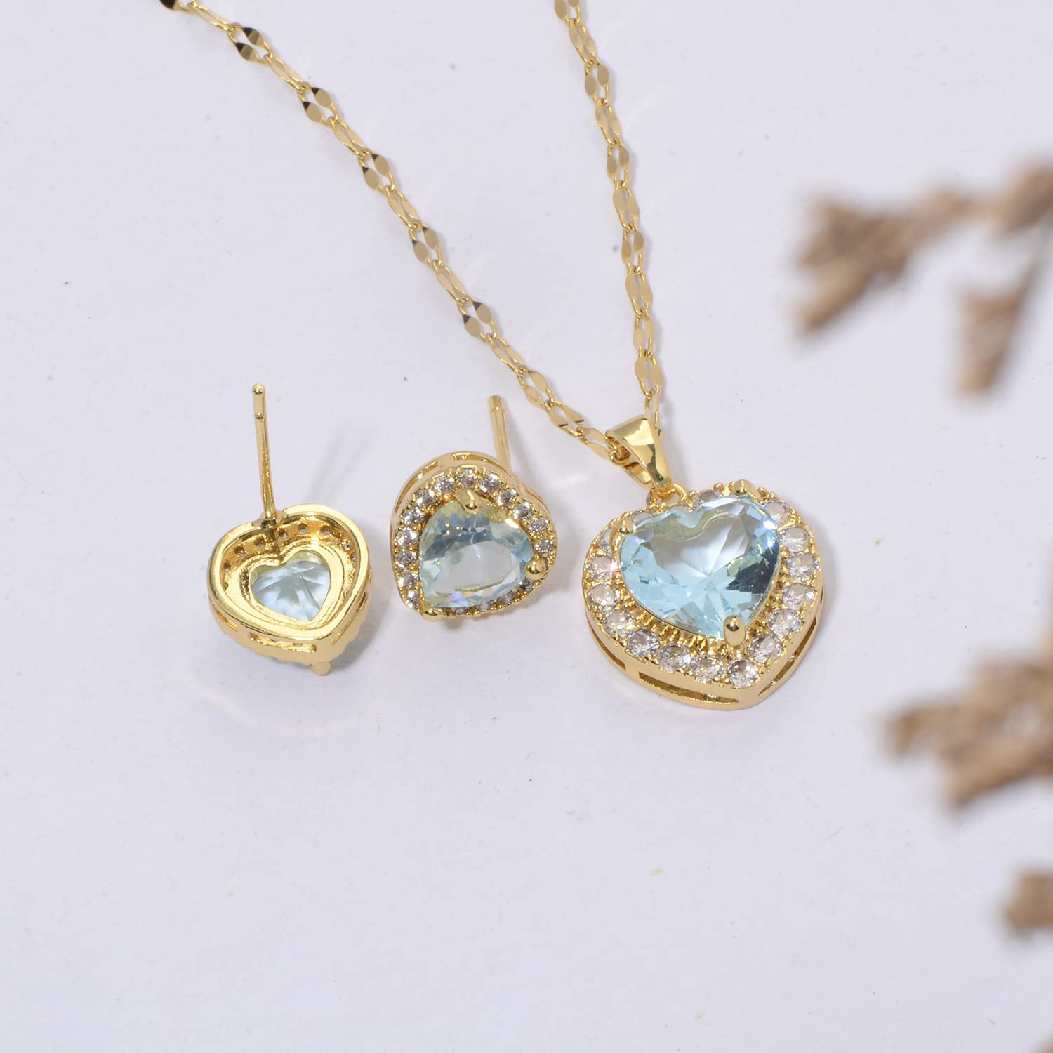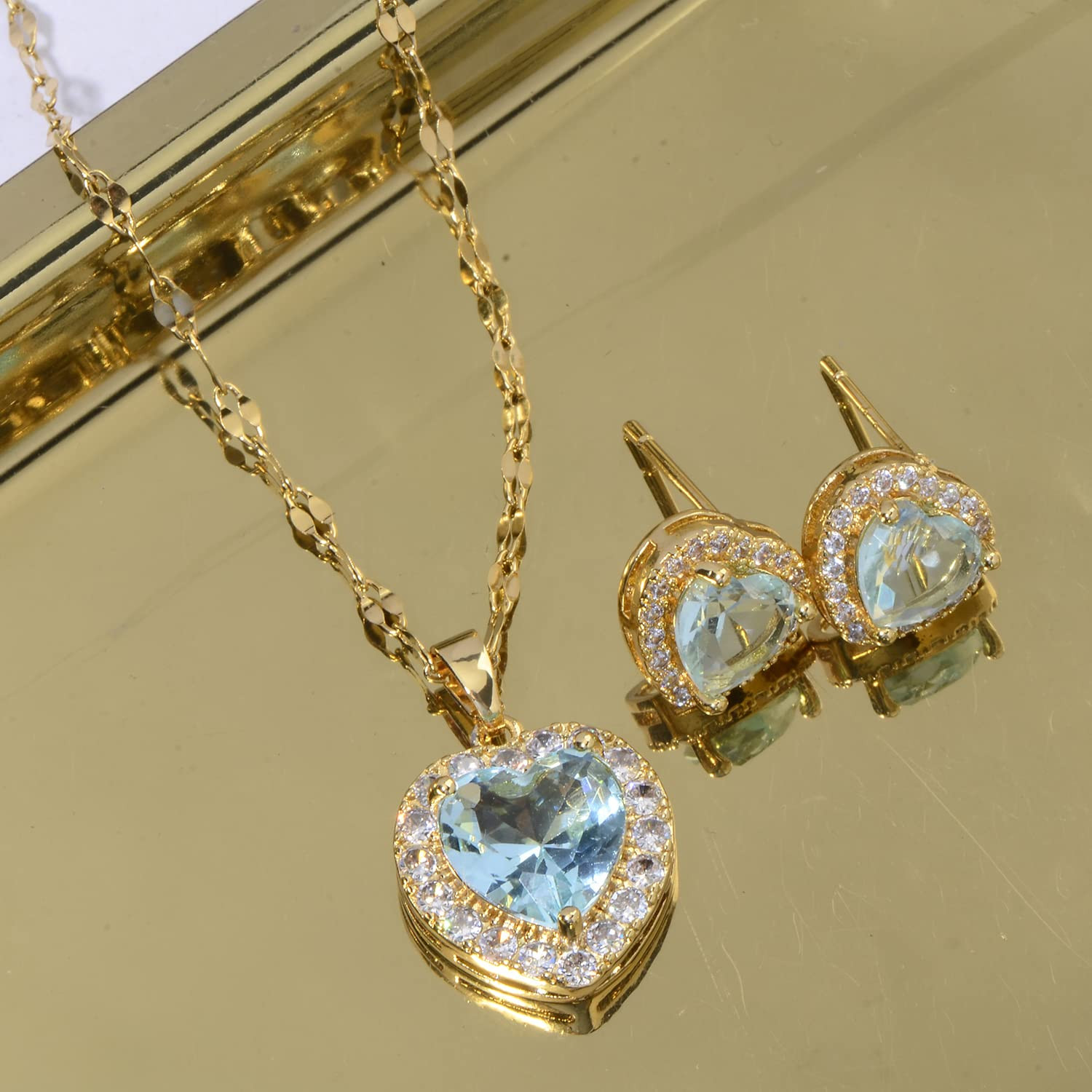 This stunning jewelry set is absolutely gorgeous! The aquamarine crystals sparkle beautifully, and the gold plating gives it a luxurious feel. The heart-shaped design is elegant and unique—perfect for adding a touch of glam to any outfit. Lightweight yet durable, it’s comfortable for all-day wear. I’ve gotten so many compliments already! Definitely a must-have for anyone who loves delicate, eye-catching pieces. Feels like wearing a little piece of luxury!