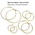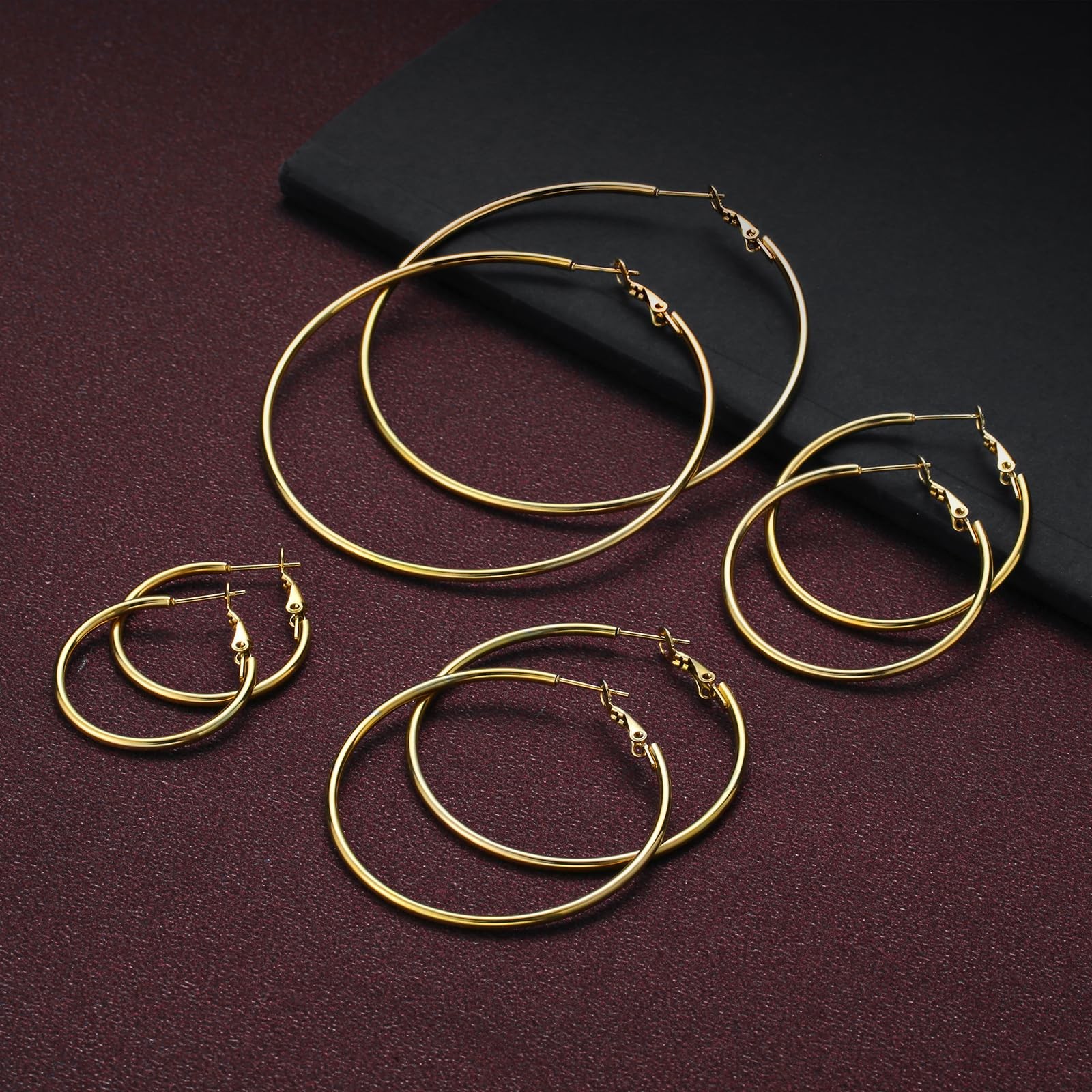 Gold Hoop Earrings for Women Hypoallergenic 1. 4 Pairs Gold Hoop Earrings Each order includes pack of 4 pairs of different size gold hoop earrings for women. (30mm/40mm/50mm60mm) One set can meet your various occasions and wearing needs, enhance your daily fashion decoration color! 2. 14K Gold Hoops These gold hoop earrings are 14k gold plated and Hypoallergenic, Nickel and Lead-Free. High polished, can keep a long time color. Don't worry about tarnish or fade over time. These gold hoops will bring you a better wearing experience. 3. Lightweight comfortable Hoops These 4 pairs gold earrings are lightweight and comfortable to wear. Stainless steel gold earrings trendy jewelry for women. 4. Hypoallergenic Earrings 14k gold hoop earrings with 925 sterling silver 20 gauge earring post , nickel-free and lead-free hypoallergenic hoop earrings for women's sensitive ears. 5. Widely Used Gold Hoops Ready for giving, Engagement, Wedding, Anniversary Day, Birthday to your girlfriend, wife, mom, Friend, Valentine's Day or Christmas Day, yourself or someone special. Gold hoop earrings set for women; 4 Pairs Gold Hoop Earrings: Each order includes pack of 4 pairs of different size gold hoop earrings for women; (30mm/40mm/50mm60mm)One set can meet your various occasions and wearing needs, enhance your daily fashion decoration color 14K Gold Hoops: These gold hoop earrings are 14k gold plated and Hypoallergenic, Nickel and Lead-Free. High polished, can keep a long time color. Don't worry about tarnish or fade over time. These gold hoops will bring you a better wearing experience Lightweight comfortable Hoops: These 4 pairs gold earrings are lightweight and comfortable to wear. Stainless steel gold clip on earrings trendy jewelry for women Hypoallergenic Earrings: 14k gold hoop earrings with 925 sterling silver 20 gauge earring post , nickel-free and lead-free hypoallergenic hoop earrings for women's sensitive ears Widely Used Gold Hoops: Gold hoop earrings set for women; Ready for giving, Engagement, Wedding, Anniversary Day, Birthday to your girlfriend, wife, mom, Friend, Valentine's Day or Christmas Day, yourself or someone special