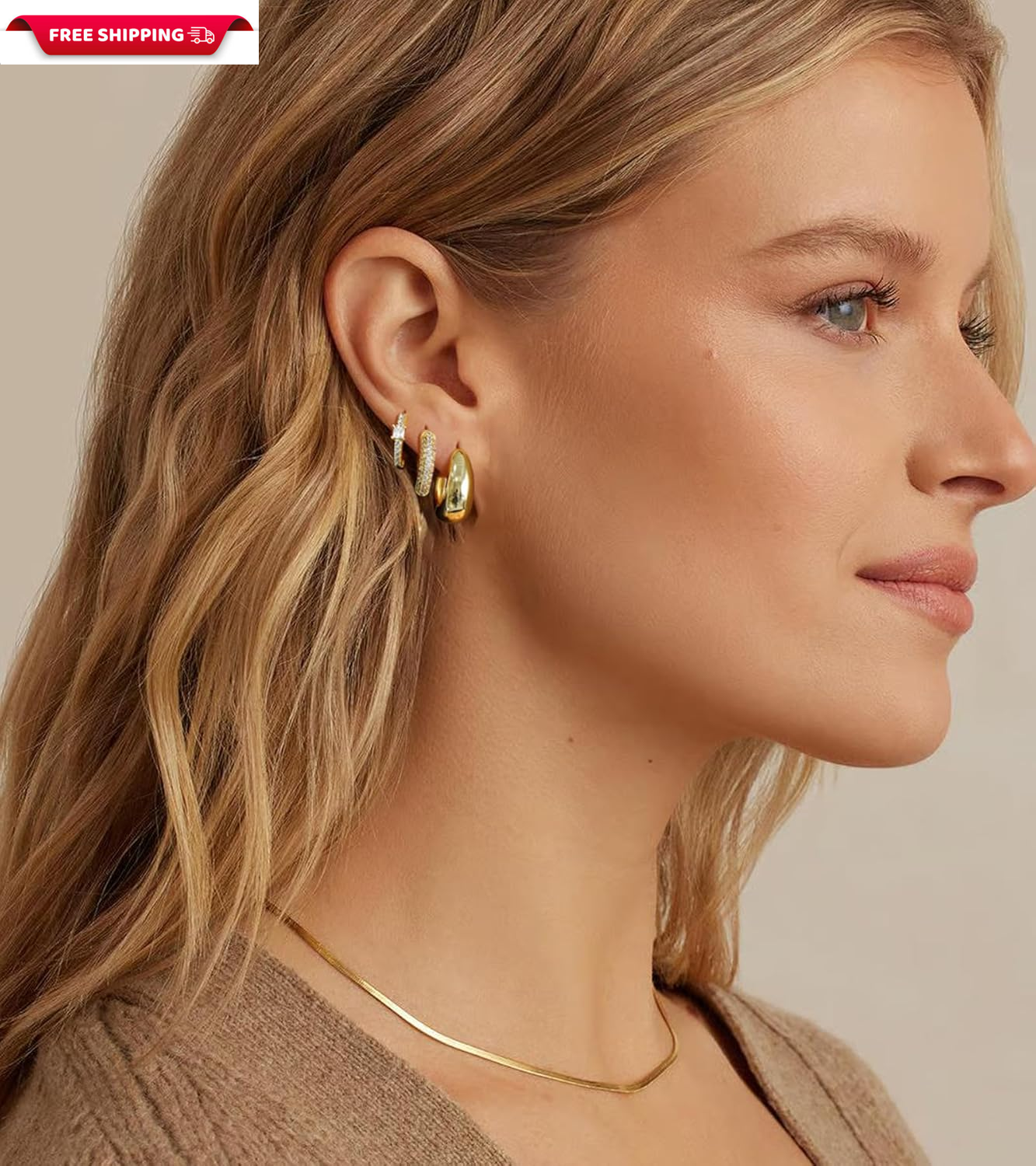 Gold Hoop Earrings Set for Women, 14K Gold Plated Small Gold Earrings Sets for Multiple Piercing, Hypoallergenic Chunky Gold Earrings for Women Earrings for Women Trendy: This gold earrings set provides 3 different styles and designs, one classic gold hoop, another with pave hoop earrings, and finally a style with standalone Cubic Zirconia earrings, they are suitable for all occasions and fulfill all your dressing needs Stackable Earrings: These gold earrings combine slim and chunky hoops to create the best gold earring set for multiple ear piercings,they can be worn alone or stacked for layering and style 14K Gold Earrings Set: Surface plated with 14K real gold, no nickel and lead elements, hypoallergenic, suitable for people with sensitive ears, high quality, attention to detail creation, suitable for daily wear Best Earrings Selection: These delicate gold stackable earrings are very practical and suitable for all dress-ups and any occasions, each pair is individually wrapped, making them a great choice for your selection After Sales Service: We provide high quality after-sales service, if you receive defective goods, please let me know as soon as possible, we will provide you with a satisfactory solution within 24 hours Product Description Gold Hoop Earrings Set for Women The video showcases the product in use. The video guides you through product setup. The video compares multiple products. The video shows the product being unpacked. Earring Sets For Multiple Piercing Fashion Earrings For Women Trendy Gold hoops Gold hoop earrings are plated with 14K real gold, which is shiny and not easy to fade and turn green 14k Gold earrings set Thick gold hoop earrings are lead and nickel free, hypoallergenic earrings will not harm your ears. Chunky earrings for Women Chunky hoops are fashionable, comfortable for everyday wear and suitable for all occasions. 3 pairs silver earrings set These chunky hoops to create the best gold earring set for multiple ear piercings Hoop earrings for Women Gift for family, gift for wife, christmas gift for women, mother, lover and friend. 1 Shiny 2 Hypoallergenic 3 All Occasions 4 Stackable 5 Ideal Gift 14K Gold Plated Earrings Sets Operating instructions for use The video showcases the product in use. The video guides you through product setup. The video compares multiple products. The video shows the product being unpacked. A Warm Tip About Earrings IF ME More Special Offer Products Add to Cart Add to Cart Add to Cart Add to Cart Customer Reviews 5.0 out of 5 stars 1 — 4.4 out of 5 stars 257 4.4 out of 5 stars 257 Price $9.99 $ 9 . 99 $9.99 $ 9 . 99 $12.59 $ 12 . 59 $11.89 $ 11 . 89 Quantity 5 pairs 5 pairs 3 pairs 3 pairs Non Tarnish ✔ ✔ ✔ ✔ Hypoallergenic ✔ ✔ ✔ ✔ promote sales ✔ ✔ ✔ ✔ New Style ✔ ✔ ✔ ✔ Gem Type No Gemstone Color Gold-D Material Brass Department womens Back finding Lever Back Shipping Fast shipping is very important for us. Our standard US shipping service is FREE. Your order will be shipped within 1-3 business days upon full payment received. Your order will be delivered within 1-3 business days after the handling time. We reserve the right to cancel any order for any reason at any time. We are not responsible for undeliverable addresses. We are not responsible for undeliverable addresses. Returns and payment We offer a 30-day return policy from the date of payment received. This return policy covers Incorrectly Shipped items, Broken or Damaged items, Items that do not match the Product description and Picture. Medicines, Pills, Creams, Gels, Food Supplements and products that cannot be reused after opening cannot be returned. For example; cat litter, powder detergent, salt, liquid products, etc. FeedBack Your feedback is very important to us, please leave us positive feedback once you receive your package and satisfied with our service. If you have any problems with your order, please contact us using the eBay communication system before leaving feedback. Please visit our eBay store to check out other items for sale! Thank you for shopping at our store.