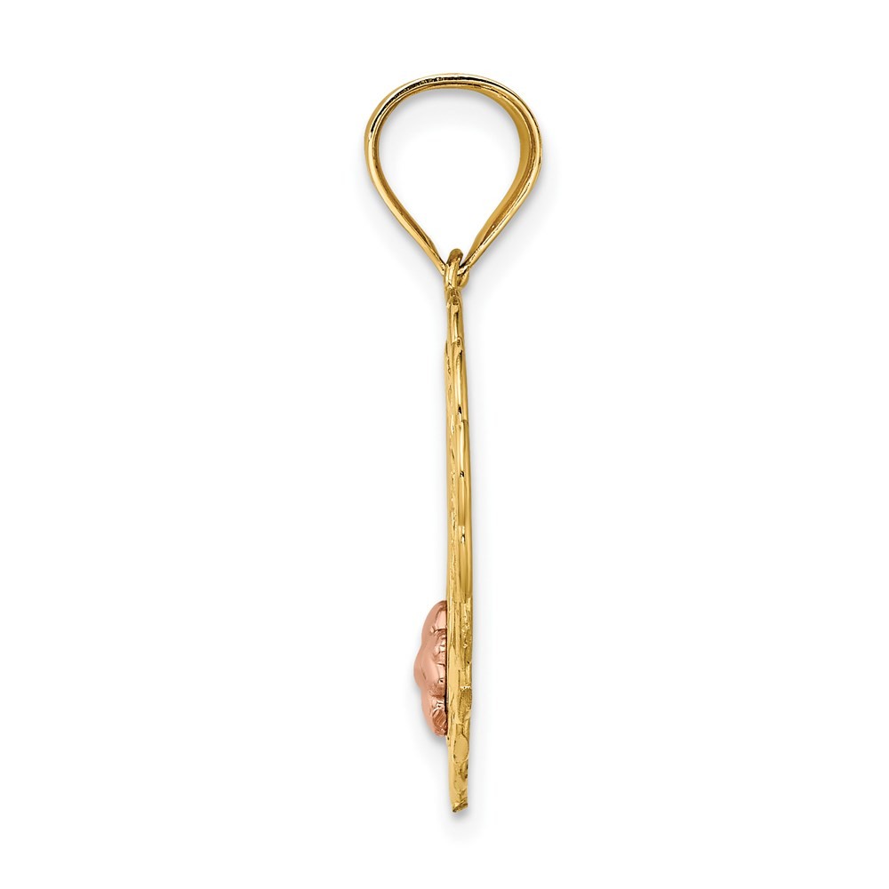 Features: Material Purity:14K Length of Item:25.9 mm Charm/Element Length:19.9 mm Charm/Element Width:21.9 mm Manufacturing Process:Casted Width of Item:21.9 mm Jewelry Type:Pendants & Charms Pendant/Charm Type:Themed Bail Width:5 mm Material Color:Two-Tone Bail Length:7 mm All weights and measurements are approximate and may vary slightly from the listed information. Welcome to diamond_6720 Payments We accept all Ebay approved payment. Please sent the payment to us within 8 days after the auction has ended, or you will have unpaid case auto open by eBay. Shipping Policy We will ship all items within 1 business days of purchase during the work week (M-F) excluding holidays. If you order on Friday, your order will be shipped the following business day. Tracking will be provided when it becomes available. We will only ship to a PayPal Verified Address. Please make sure your address is current and correct. If the information does not match, your order may be canceled. Buyers are responsible for all customs, duties and taxes for your respective countries. Delivery times for International Shipping will vary. California Buyers Pay 9.0% Tax on all orders. case auto open by eBay. Return Policy & Exchange Returns or Exchange are accepted. Buyer must contact us within 30 days after the item is received. Item must be returned in unworn and resalable condition. We will only issue a refund for the purchase price, excluding any shipping fees. If we are at fault, we will provide a full refund. Buyer is responsible for all return shipping costs. BUYERS FEEDBACK If you have any concerns regarding your purchase, please contact us via eBay Message, we assure you that a satisfactory resolution will be reached. Your feedback is very important to us Do remember to give us 5 star rating(*****) if you are satisfied with our product & service .