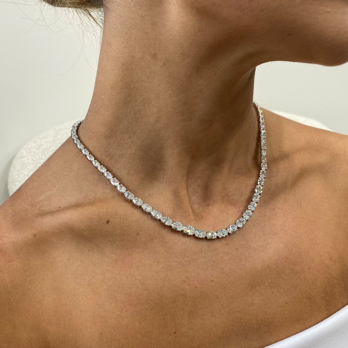 Free eBay listing template designed by dewiso.com Pot of Jewels 925 Silver 24CT Oval Lab Created Diamond Women's Tennis Necklace 18" Tennis Necklace 14K White Gold Over 925 Sterling Silver Solitaire Tennis Necklace for women Welcome to Pot of Jewels Buy With Confidence from A Trusted Seller Note to buyer All International buyers are responsible for all tax, duties and customs fees. The images uploaded will not match exactly with the Original products as the images are Photoshop. **What is 925 sterling silver?** 925 silver means the silver have 92.5% Pure silver in it. no matter hardness, shine, antioxidation is the most Reasonable content, Is the international recognized High quality Jewelry. **Why the 925 silver jewelry will become black after wear a long time? Silver and the sulfur in the air have a react if not protect well. (no water is better). Silver and the toxin in your body have a react be black. **How to handle the black silver jewelry? Use silver clothing to clear it.--the best and good way, No water is the better. ** Why some 925 silver jewelry plated 18K White Gold? To protect the silver color loss color and make the jewelry looks more shine and bright. Special Care The White/Yellow/Rose/Black Gold Plating on this item can be effected by many elements. We advise removing this ring when being exposed to any type of substance or chemical. This includes, but not limited to: perfume, hairspray, water, lotions, cleaning products, etc. Payment :- We accept payment via Payoneer only. You can also pay using your credit card, via Payoneer, by using Payoneer as a guest. Payment is required within 3 days of the sale of an item. Shipping:- Orders are shipped within 5 to 7 business days after the payment is received and the size of the products (if any). We will send you an email to confirm the outgoing date and give you the estimated arrival date at your address. Please note that if you pay for expedited shipping, the handling time for the order is stands 5 to 7 business days. Whenever the item ships, It will ship by the expedited service, if you have paid for it. Business days do not include Saturdays, Sundays and Federal Holidays. Terms of Sale For Returns - We offer an unconditional, no questions asked 100% money back policy for a maximum period of 30 Days, starting from the day you have received the item. If you find the product damaged or not as described on the listing, we are happy to refund your payment once we received the item. It is that simple! The only condition is that the item must be returned unused, unchanged, undamaged and including the complete packaging, documentation, tags, etc. Shipping charges are not refundable. Buyers pay the return shipping Exchange option is not available. About US We cater to Domestic as well as International clients with equal ease. Our first and foremost concern is quality that we provide to our customers. We have a dedicated team of craftsmen’s whose perseverance and hard-work maintains the quality required for Gold, Silver, Alloy and Brass jewelry by our customers. We can manufacture Silver with Moissanite products as well as Silver-CZ products with equal ease. We have state of art machinery to match the customer’s quality requirement. We prepare product on orders basis and delivery is on time. Contact US If you have any questions, concerns or inquiries about this item or any other item listed on Pot of Jewels Brand please contact us through the ebay messaging system. We answer all messages within 48 hours, usually earlier. Feedback We request our valued customers to leave us a feedback once satisfied with the transaction as we are always depending on reviews from you and always need your assistance. We also request you to contact us for any kind of issues before leaving a negative or neutral feedback after the transaction. We will try our absolute best to resolve any problems that you may have. Please contact us through the ebay. If you are satisfied with our item and services, please leave us a Positive Feedback with a 5-star (*****) on the ebay Detailed Seller Rating system, which will help us to serve you better. Thank You & Visit Again !!