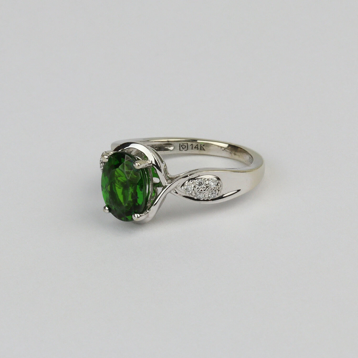 14K White Gold Plated Oval Cut Simulated Emerald Engagement Ring for Women 2Ct