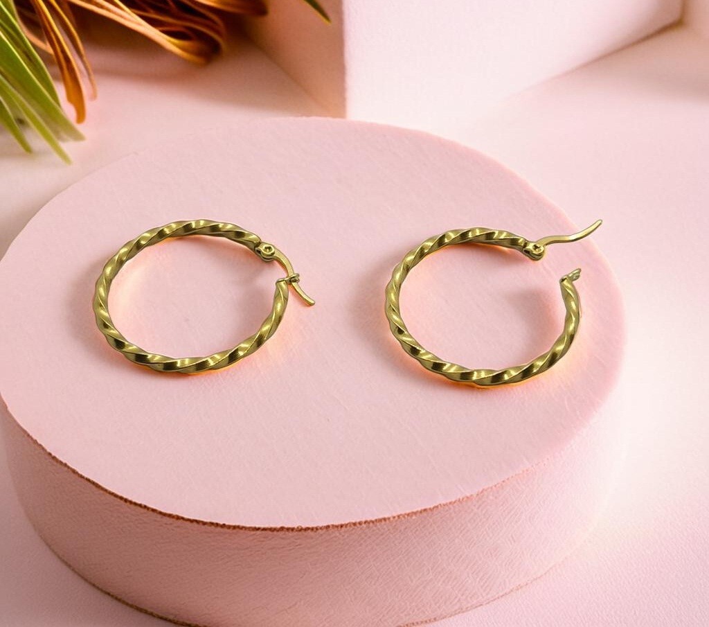 Gold Statement Hoop Earrings - Modern, Chic Jewellery for Women Turn heads with these stunning gold-plated hoop earrings. Featuring a unique twisted design, these statement earrings are available in sizes from 30mm to 60mm. Ideal for anyone who loves modern, fashion-forward jewellery. A versatile choice for gifting – perfect for mum, sister, daughter, best friend, or any special person. Great as an anniversary gift, birthday present, or just because!