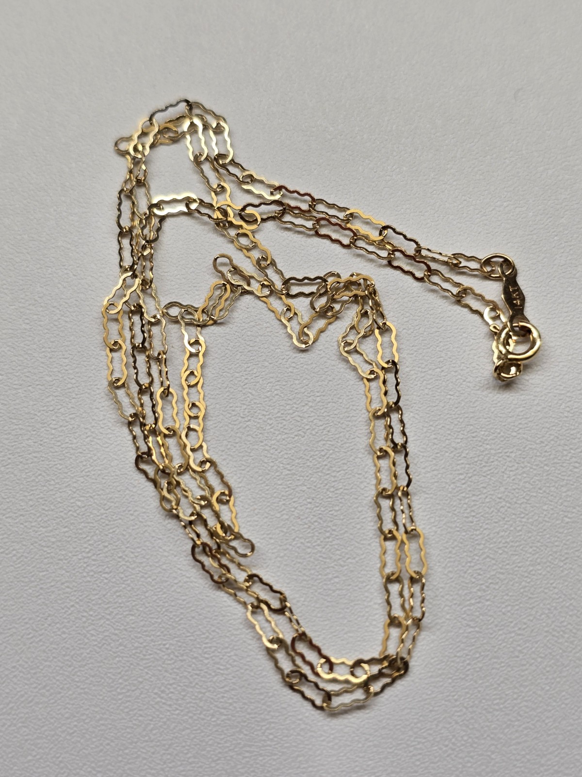 This 14K yellow gold fine ladies chain is a delicate and elegant piece of jewelry, perfect for various occasions such as Mother's Day, anniversary, birthday, and Valentine's Day. The chain is signed and features a beautiful yellow color, making it a timeless and classic accessory. With a necklace length of 18 inches, this open dainty chain is the ideal choice for those who appreciate beauty and sophistication in their jewelry pieces.
