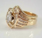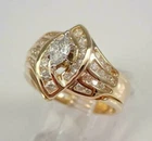 14K Yellow Gold Plated Silver 2 CT Simulated Marquise Diamond Wedding Ring