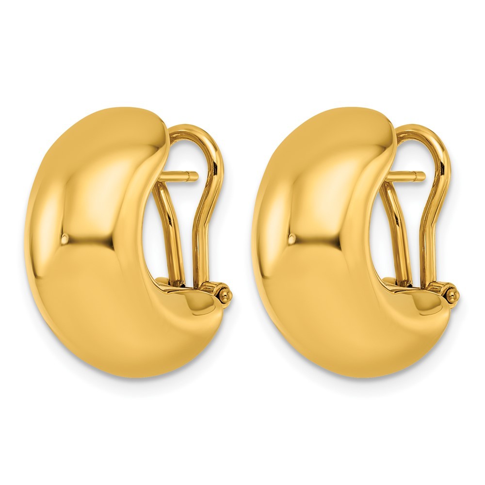 14K Yellow Gold Polished Satin 10.5mm C-Hoop Omega Back Drop & Dangle Earrings