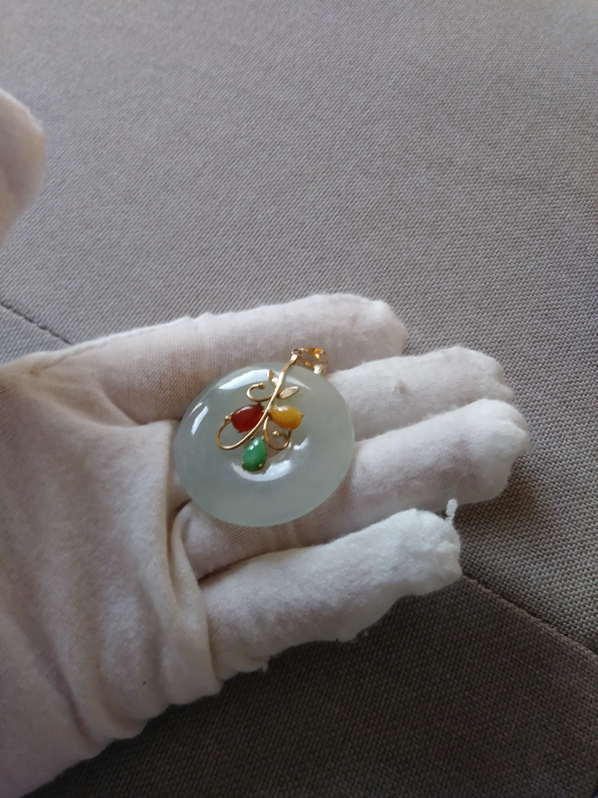 14k 585 beautiful elegant multi colors jade jadeite pendent. Condition is Pre-owned. Shipped with USPS Ground Advantage.