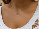 14k Solid Gold Small Diamond Cross Pendant Necklace Lab Grown Diamond Cross 12mm x 8mm ✨ Petite Elegance with Ethical Sparkle This delicate 14k solid gold cross pendant features 11 lab-grown diamonds —each precisely set to create a radiant symbol of faith and style. With a compact silhouette and ethical brilliance, it’s perfect for layering or gifting. 🔹 Pendant Details: Material: 14k Solid Gold (White or Yellow) Diamonds: 11 Lab-Grown Diamonds (1.40mm each) Total Carat Weight: Approx. 0.14ctw Size: Approx. 12mm x 8mm (Bail is not included with the measurement) Bail Opening: 3.2mm (fits most fine chains) Finish: High polish for refined shine Style: Minimalist cross with full diamond coverage SKU: Z2646
