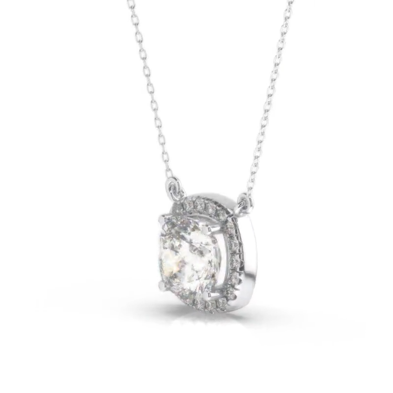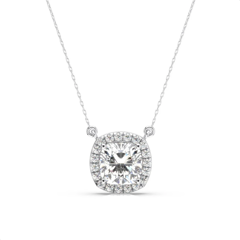 $ 1270.03Necklace Pendant Blue cushion 3.8Ct IGI Lab Grown 18 Inch Diamond 14k White Gold