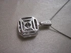 This 14k white solid gold pendant showcases four striking princess cut diamonds featured in the center of the pendant framed in a halo style of pav-set diamonds, offering brilliant sparkle with every movement. Total weight is 3 grams for chain and pendant. Crafted with precision and care, its cluster design delivers a refined expression of modern style that complements both upscale and everyday looks. Whether worn as a daily signature or for special occasions, this pendant blends timeless craftsmanship with contemporary sophistication, making it a standout piece in any refined jewelry collection. This beautiful pendant comes with an 18" 14k white solid gold chain.