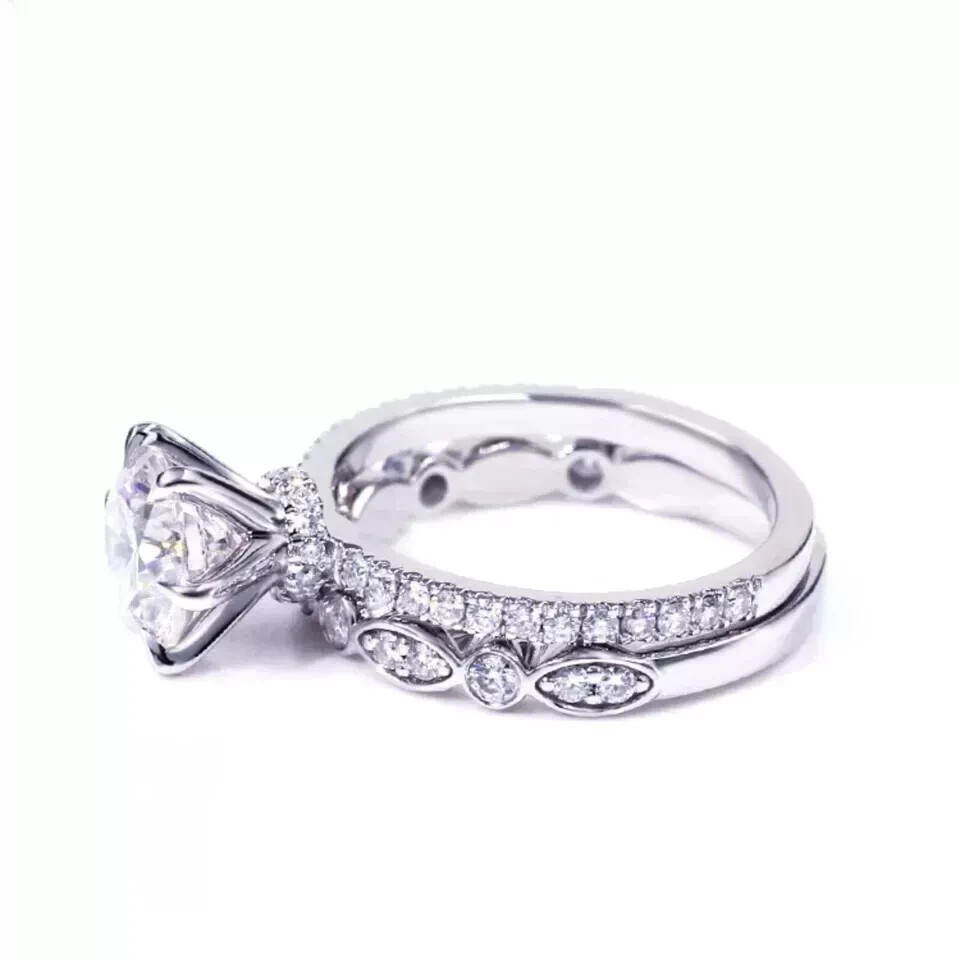 Elevate your special moments with the exquisite 14k White Gold Plated Engagement Ring, a symbol of love and commitment. The ring features a 3.50CT round-cut natural moissanite, radiant in its brilliance and crafted to perfection. Its prong setting ensures secure hold, showcasing the gemstone's flawless clarity and fancy light color that adds a touch of elegance. Designed for discerning women, this ring is available in all sizes to ensure a perfect fit. Each piece is handmade, personalized, and tailored to meet your unique preferences. Whether it’s an anniversary, birthday, or any other celebratory occasion, this ring is a timeless choice that represents the beauty and romance of a commitment.