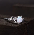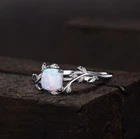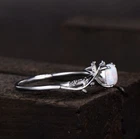 14k White Gold Plated Natural Opal Cushion Cut Rainbow Leaf Band Ring