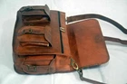 Description Handmade Goat Leather Satchel Sling Messenger Bag QUALITY LEATHER BAG Each bag is individually made using goat leather by experienced crafts people .The bag gets better and better with the time as the leather softens and deep-ens in color. The tonality color of each bag might vary in accordance with the low and high temperatures from the heart of The Thar desert.The leather does not receive any chemical treatment. On the bags a special vegetable oil is applied to give more tonality to the dominant brown (light and dark) color of the bag also making it more resistant to the water.Each bag has its charm and style and a very special earthy smell that will assure you it’s real leather.Its lightness, flexibility and durability will not make you regret your purchase. HANDMADE GOAT LEATHER SLING SATCHEL BAG FOR Men's WOMEN'S AND GIRL'S Features Green canvas fabric Internal 2 compartments and 2 zipper Front 2 Small Pocket Thick adjustable strip SIZE:11"(L), 15"(W), 4"(D) (See the picture for more detail) Strong, light-weight goat leather, tanned without the use of chemicals Leather softens and darkens with use Color and texture of the leather varies Natural real leather smell, just like a luxury car or lounge suite Solid brass buckles and fixtures - will last for years Has a wonderful natural look, and feel Each bag is uniquely individual due to slight color and marking variations on natural leather Brand New Handmade Leather Bag without tag