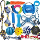 GREAT VALUE SET & SUPER FUN: 15 pack puppy toys including 3 dog chew and rope combined toy, 2 cotton tug rope toys, 3 rope chew toys, 3 rubber dog bite toys, 2 squeak ball toys, and 1 treat ball and outdoor flyer. Various kinds of popular dog toys you get meet different requirements of a dog's daily life such as teething, training, kill boredom, and interactive playing. HEALTHY PUPPY TEETHING TOYS: We pay special attention to the dogs' health and safety. All the toys are made of natural rubber and cotton. Dogs have a strong desire to chew everything in the house when teething. So by chewing our bones toy, pacifiers, and rubber teething rings are all great ways to relieve your dog's itchy teeth while your dog is teething. KEEP YOUR DOGS ORAL HEALTH: Chewing all kinds of toys can not only cleans your dog's teeth and removes residue and tartar, but also help to clean dental plaque which hides in the dead corner, remove it and prevent decay. Keeping your puppy have healthy chewing behavior. FUNNY AND BUSY DOG: Chasing rubber flyer is dogs’ instinct outdoors, exercise regularly to maintain a healthy weight for your dog. Play with the squeakers treat ball is a great way to increase dogs’ IQ. A squeaking ball can quickly attract the dog's attention. You will be surprised to find that dogs quickly learn to toss and roll the ball to get their snacks out. At the same time, develop good eating habits and improve overeating. INTERACTIVE DOG TOYS FOR BOREDOM: Dogs are animals that need love and accompanied. Our rope toys are very suitable for indoor and outdoor activities, such as tug of war, toss and fetch games. That’s positively enhances the relationship between you and your dogs. Also, when you are busy, dogs can play with a wide variety of toys by themselves without feeling lonely. HAPPY DOG G GOES WOOF: Bring a different surprise to your best friend every day. This unique dog toy gift is designed for your best friend. NOT FOR AGGRESSIVE CHEWERS since we choose the safest material not the strongest. Click Add to Cart Now! The great value toy set will accompany you and your dog to spend a happy and wonderful time. Feel free to contact us before or after your purchase with any questions or confusion. Product Description CAUTION: NOT RECOMMENDED FOR AGGRESSIVE CHEWERS. (COLORS MAY VARY) Important: These toys are designed to be durable but not indestructible. Please note that they may not withstand aggressive chewing. We prioritize the safety of your furry friend by using the safest materials, rather than the strongest. Safe for Dogs to Chew Our toys are made of safe and non-toxic materials, which are safe for dogs to chew. Durable for Puppy Teething All rope and rubber toys are long lasting, one toy set for all needs. Variety of Dog Toys 15 different toy sets are great value for all your dog's daily needs. The toys are made with safe & non-toxic materials and every toy is designed to the best size for the puppy. Great teething puppy toys in this dog toy value pack. The following nearly indestructible dog toys 15 pack include: 4 Durable interactive rope toys for dogs 4 Rope chew toys 1 Treat dispensing ball 2 Dog ball with squeakers 3 Cute rubber teething toys to promote clean teeth for dogs 1 Interactive flyer toy Great dog toys for fetch, bonding with your puppy, interactive dog toys, tug of war, stress relief for dogs, toys help clean dogs teeth, puppy teething toys. Add to Cart Add to Cart Add to Cart Customer Reviews 4.1 out of 5 stars 858 4.3 out of 5 stars 444 4.1 out of 5 stars 105 4.4 out of 5 stars 3,510 Price $21.99 $ 21 . 99 $19.97 $ 19 . 97 — $12.99 $ 12 . 99 Animal Size Small & Medium Small Small & Medium All Breed