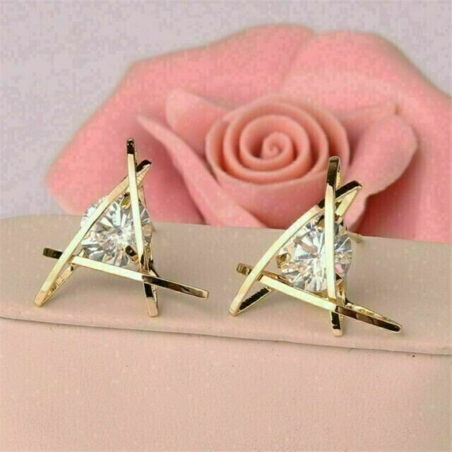 $ 52.814K Yellow Gold Plated 2Ct Round Simulated Diamond Women's Stud Earrings Silver