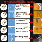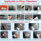 welder Extended Accessories: The newly upgraded 150 W plastic welding machine is equipped with 6 kinds of 800 pcs hot staples, 8 plastic welding roads, and 2 thermal smoothing head. 6 different types of hot nails and electrodes for all your welding needs. No need to buy additional hot staples, cutting costs for you. 2 in 1 function, make your welding work more professional Fast Heating: Are you still worried about the slow heating of the welding torch? Our plastic welding torch has a maximum power of 150 W. It can be heated and used without waiting. Overheating protection function, embedding staples in plastic with heat will not damage the car and plastic surface, very strong after repair, effectively extending the service life Easy Operation: Just select the appropriate staple according to the crack, insert the brass bracket, press the power button, let the staple melt into the plastic piece slowly, use the hot smoothing head after welding to repair the surface or use it again Welding strips cover the repair, making your repair work perfect. Front LED indicators give you a better view in the dark Widely Applicable: Plastic repair kits can repair 98% of plastic products on the market. Tips: This product is an upgraded 150W welding gun. The instructions has not been updated due to product upgrade. If you receive an old version of the instructions, do not doubt, we ensure that the product itself is a 150 W welding gun. It's just that the instructions was not updated in a timely. Sorry for the inconvenience WHAT YOU WILL GET:2-in-1 plastic welding gun kit, equipped with 1 x Plastic Welding Machine, 1 x Carrying Case, 8 x welding rod, 2 x smoothing head, 800 PCS hot staples (200 PCS 0.8 mm wave staples, 100 PCS 0.8 mm flat staples, 100 PCS 0.6 mm flat staples, 100 PCS 0.6 mm wave staples, 150 PCS 0.6 mm M staples and 150 PCS 0.8 mm V staples), as well as 1 x pliers and 1x sharp utility knife to meet your usage needs